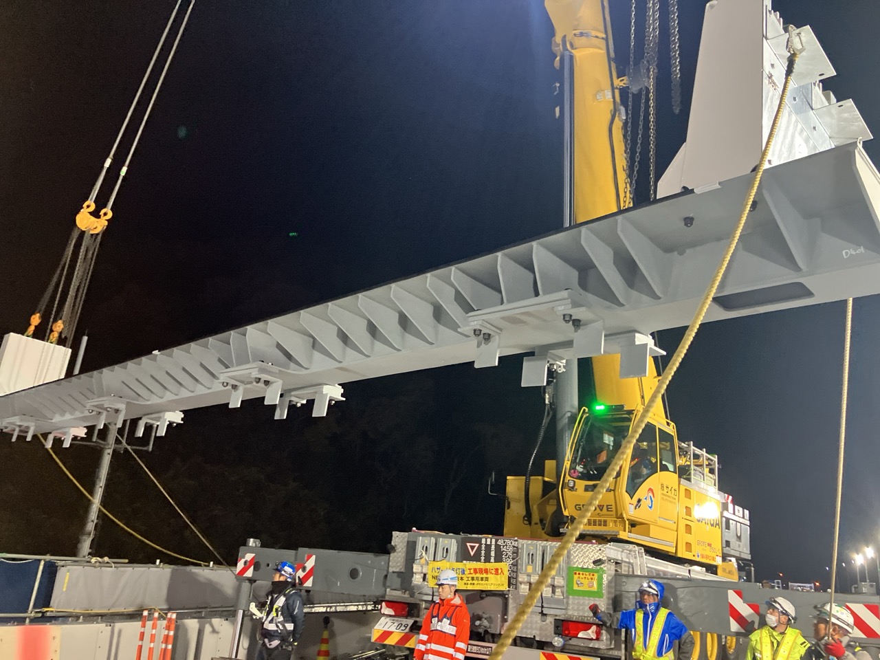 この後は調整用の仮覆工版および仮設鋼床版を撤去してプレキャストPC床版を配置し、仮舗装を行うことを繰り返し、所定工事完了直前にBLG(プレキャストPC床版上面のみ)およびFFPの施工を行い、供用する。