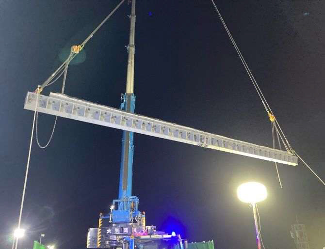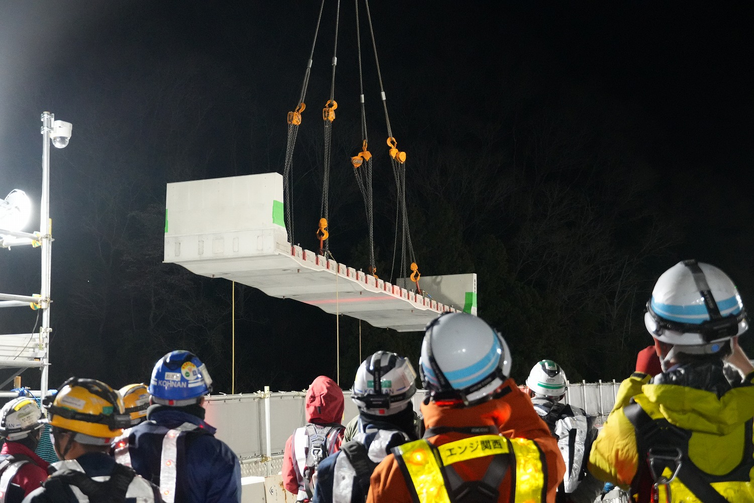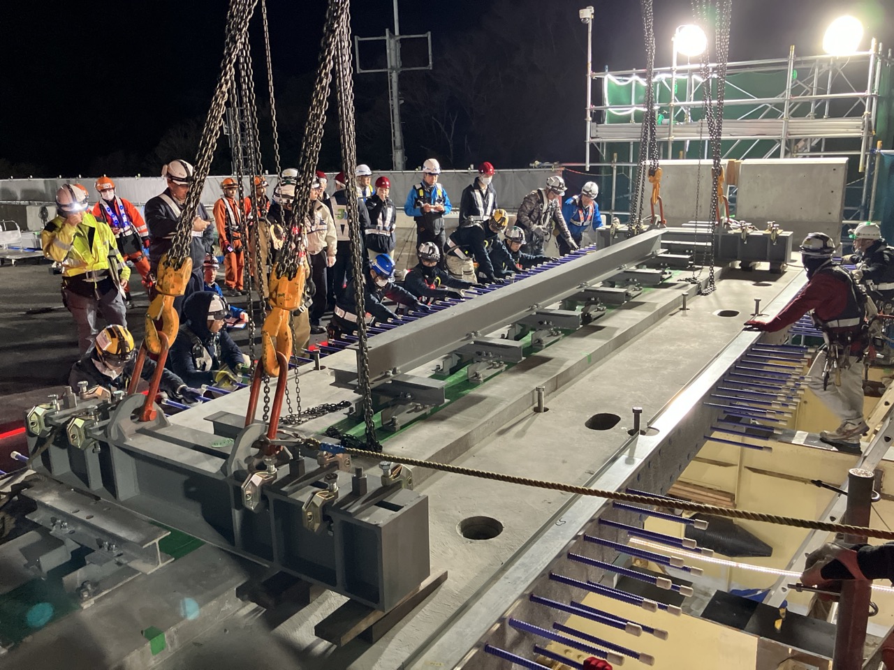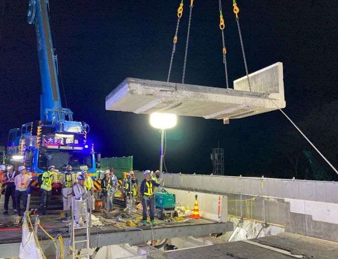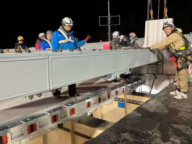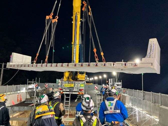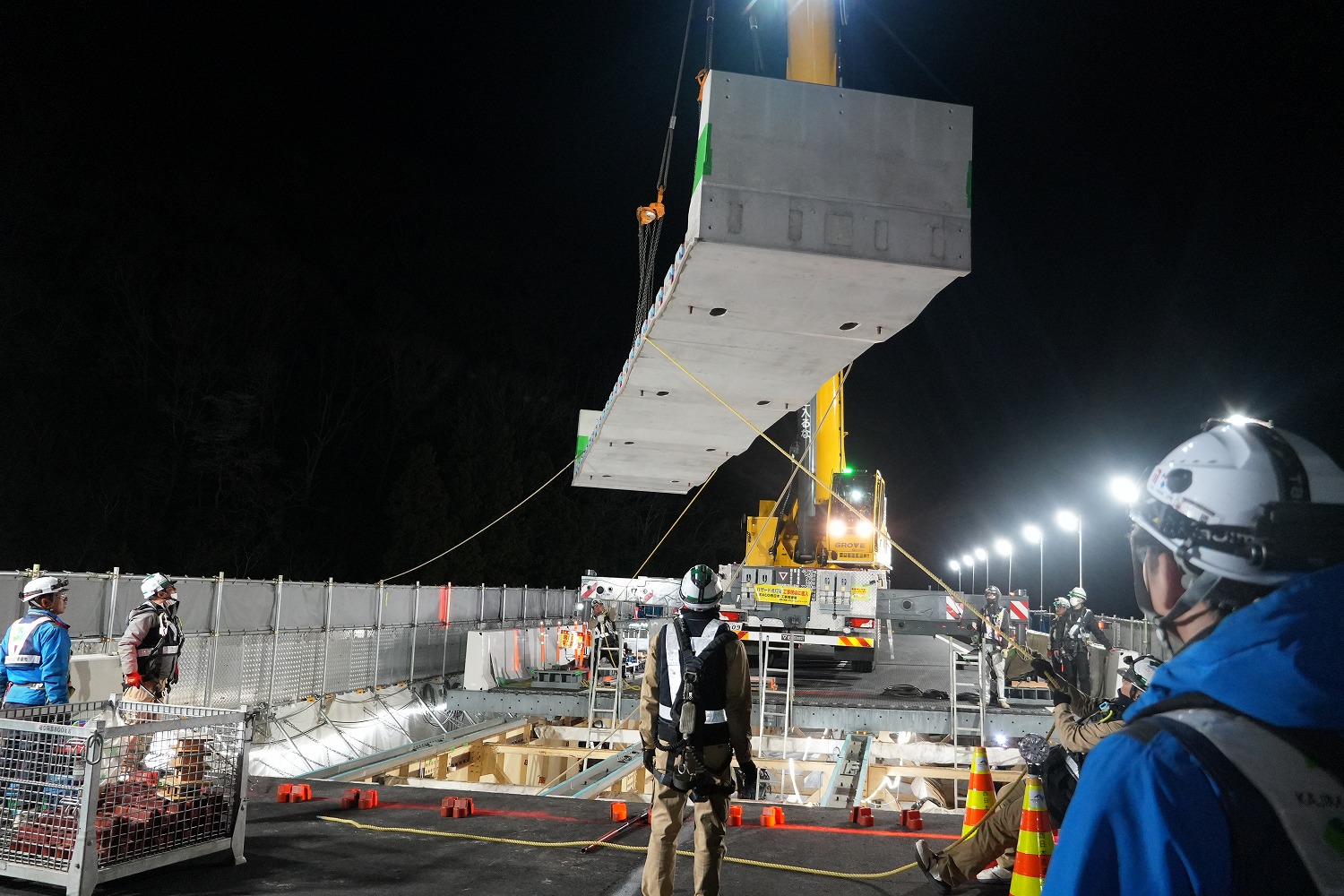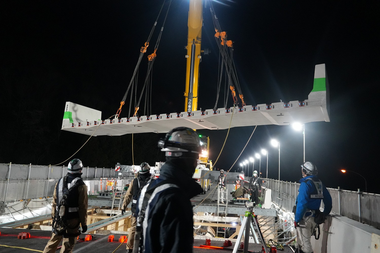プレキャストPC床版の架設状況(井手迫瑞樹撮影)