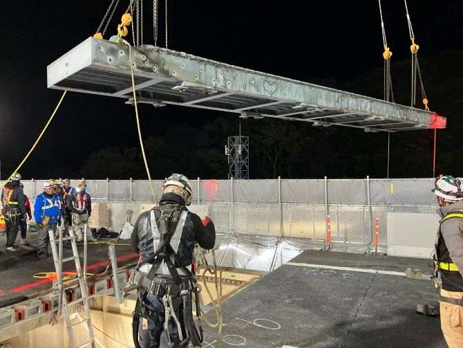 床版はトレーラーで搬入される / STEP1とSTEP2が混在するとトレーラー作業が錯綜