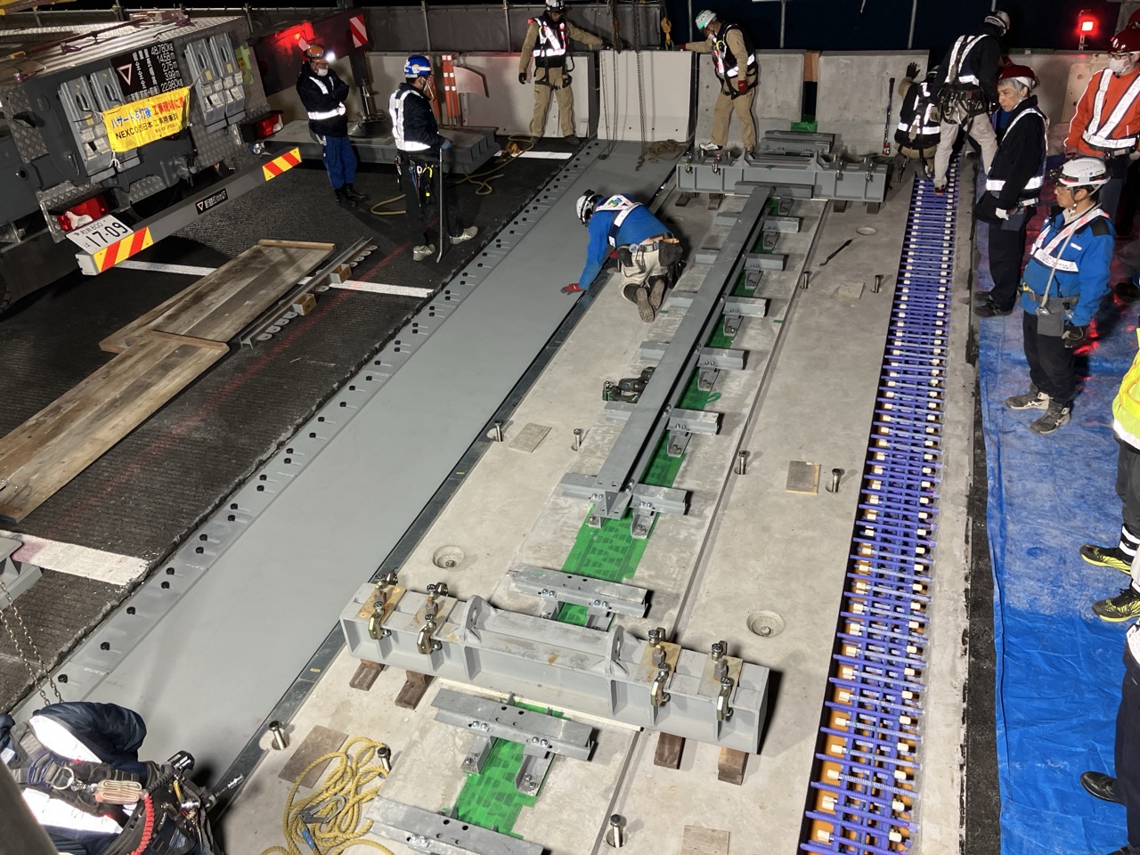 伸縮装置部もプレキャストPC床版と一体化した状態で設置