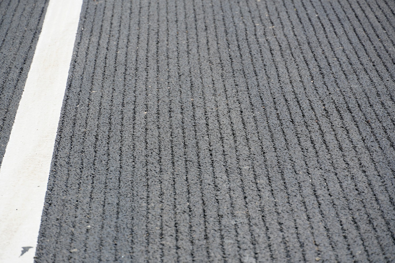 本工区の線形はカーブが多く、さらに縦横断とも勾配がきつく、冬季には路面凍結の可能性が高い。そのため事故抑止の観点からFFPが採用された。なお、橋梁を超えた先の土工部においても、カーブがある箇所ではFFPを使用している。FFPの縦溝粗面によるスリップ抑制や、塩分保持の持続性といった効果が期待される。
