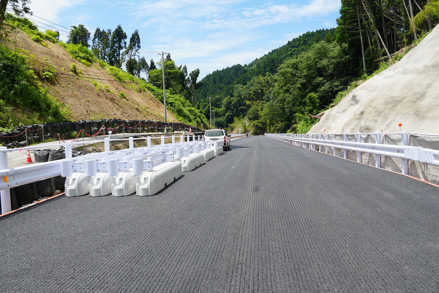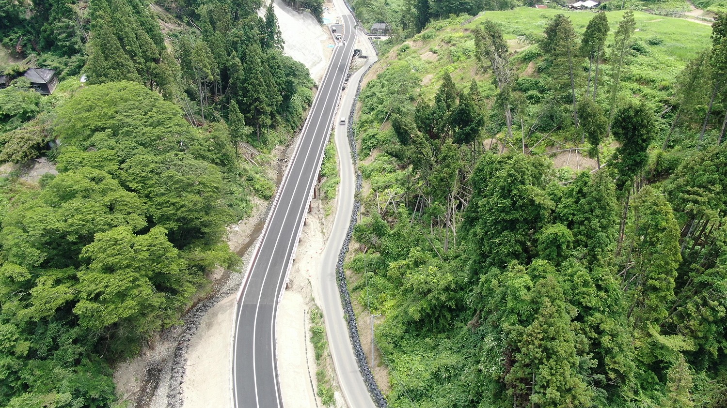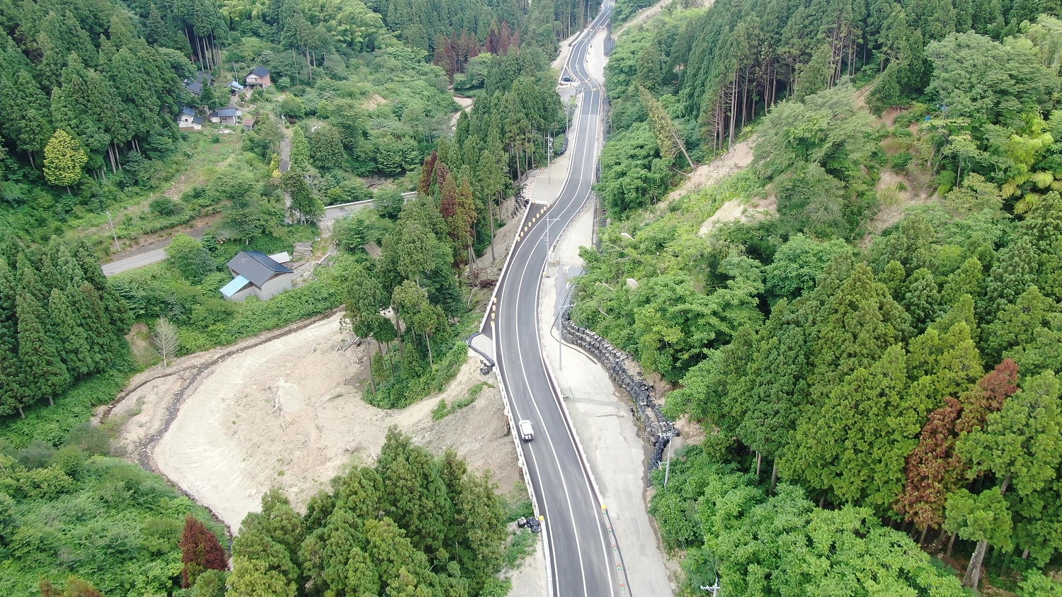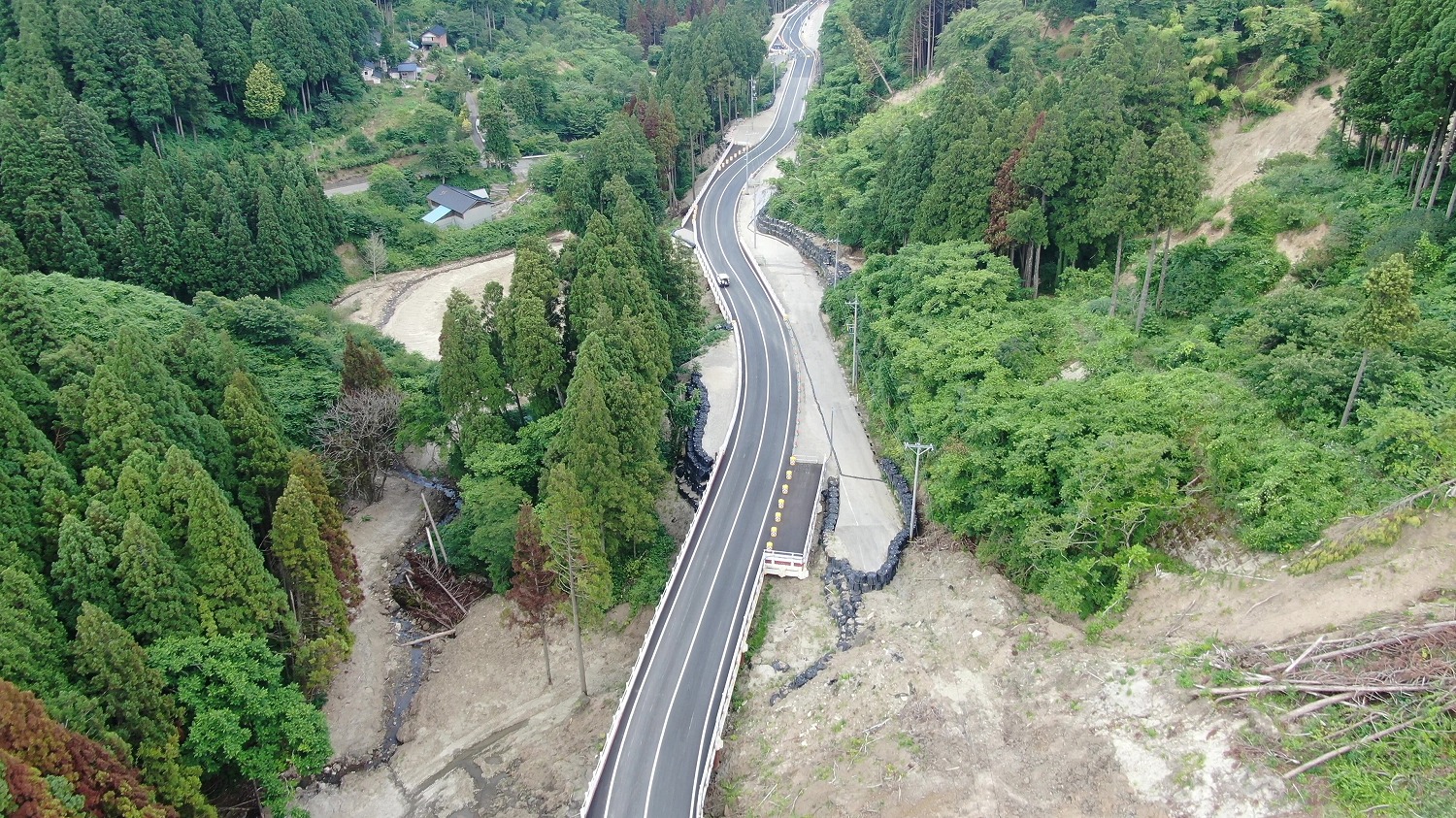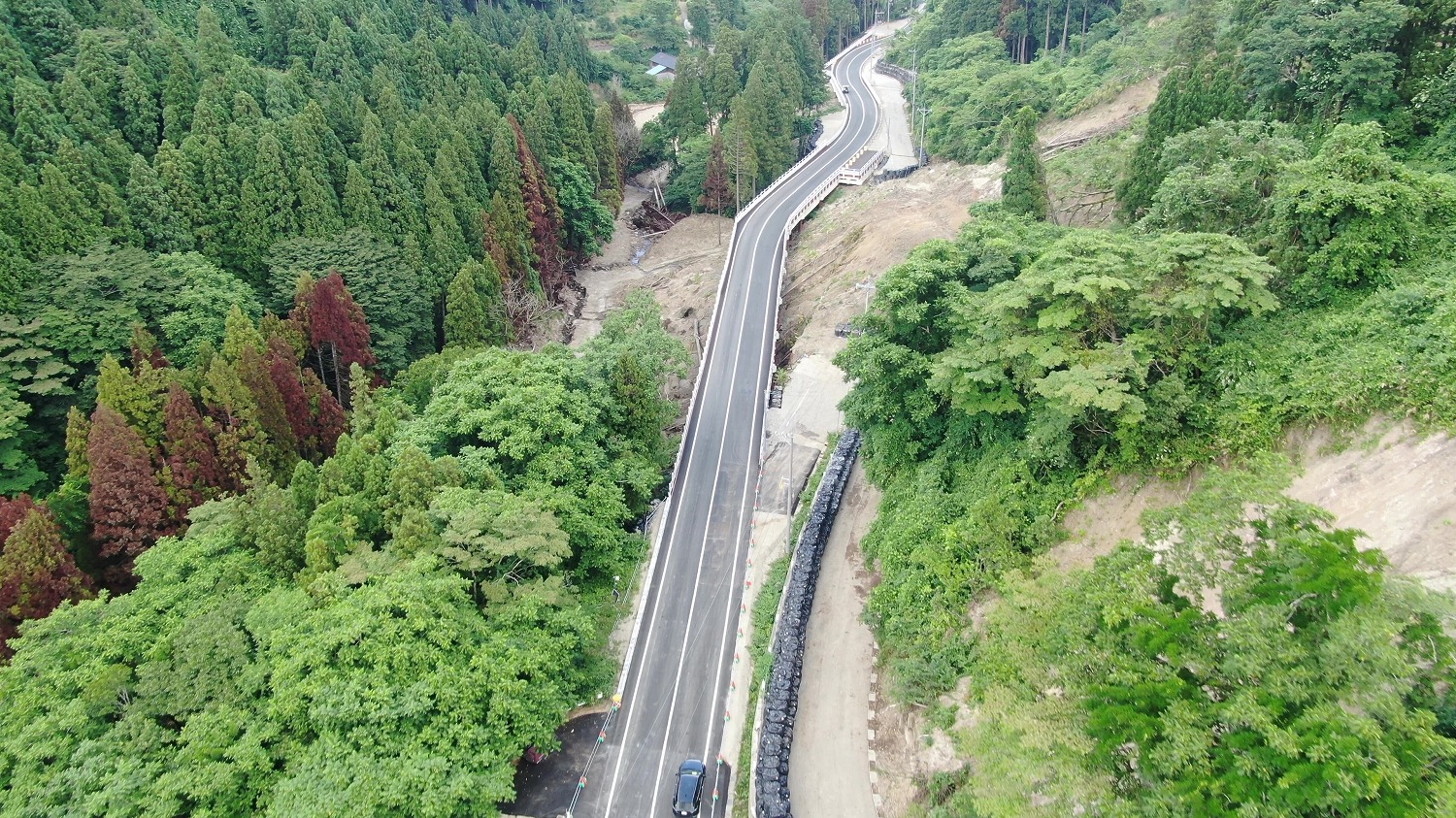 5-40の仮橋、仮設道路でつなぐ区間の既存道路は、24年元日の地震時に地すべりにより道路が崩壊し通行不能となった。その後、仮設道路で通行できるようになっていたが、これが9月下旬の豪雨で寸断された。仮設道路は24年12月までに寸断された箇所の補修を終えた。