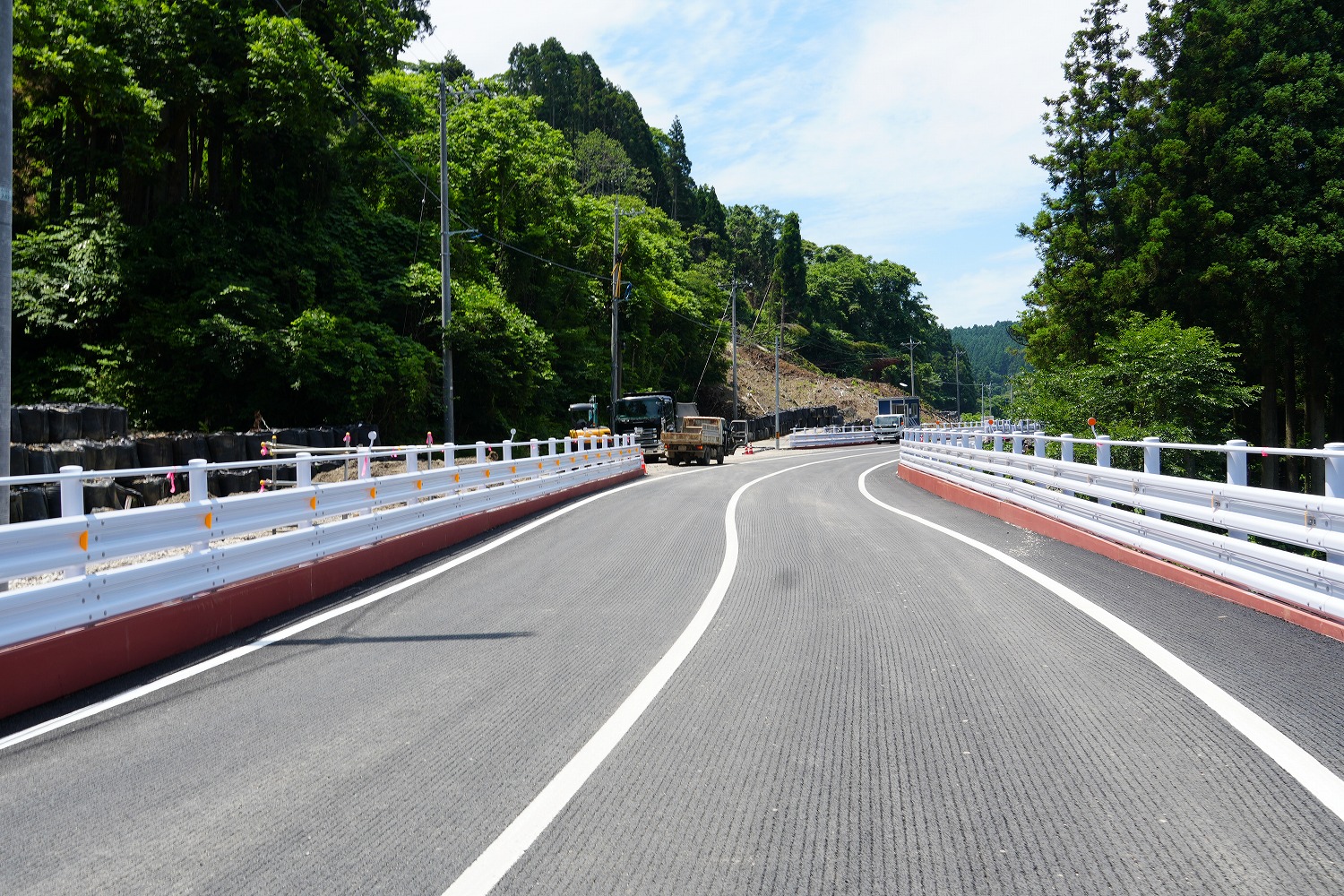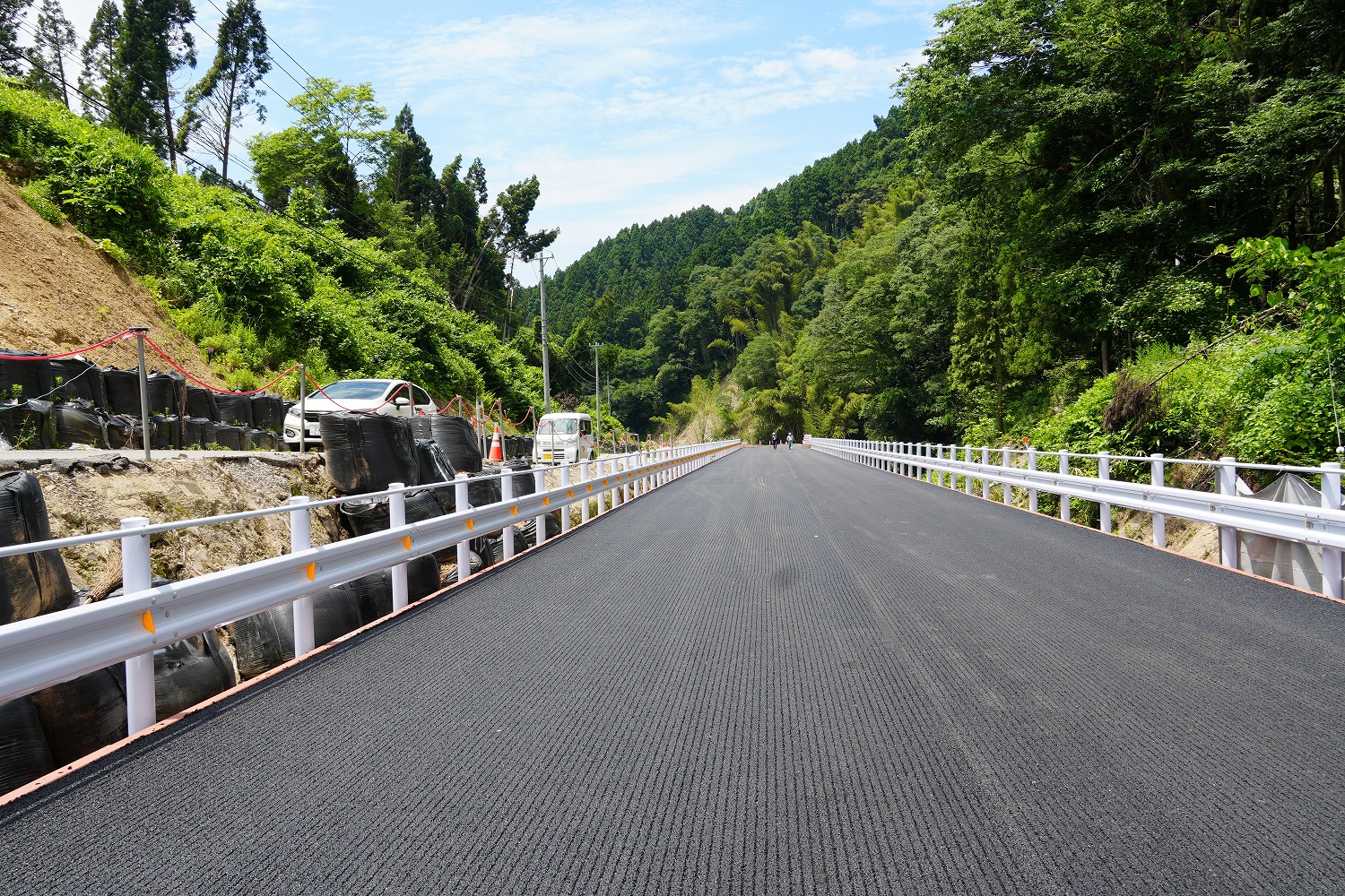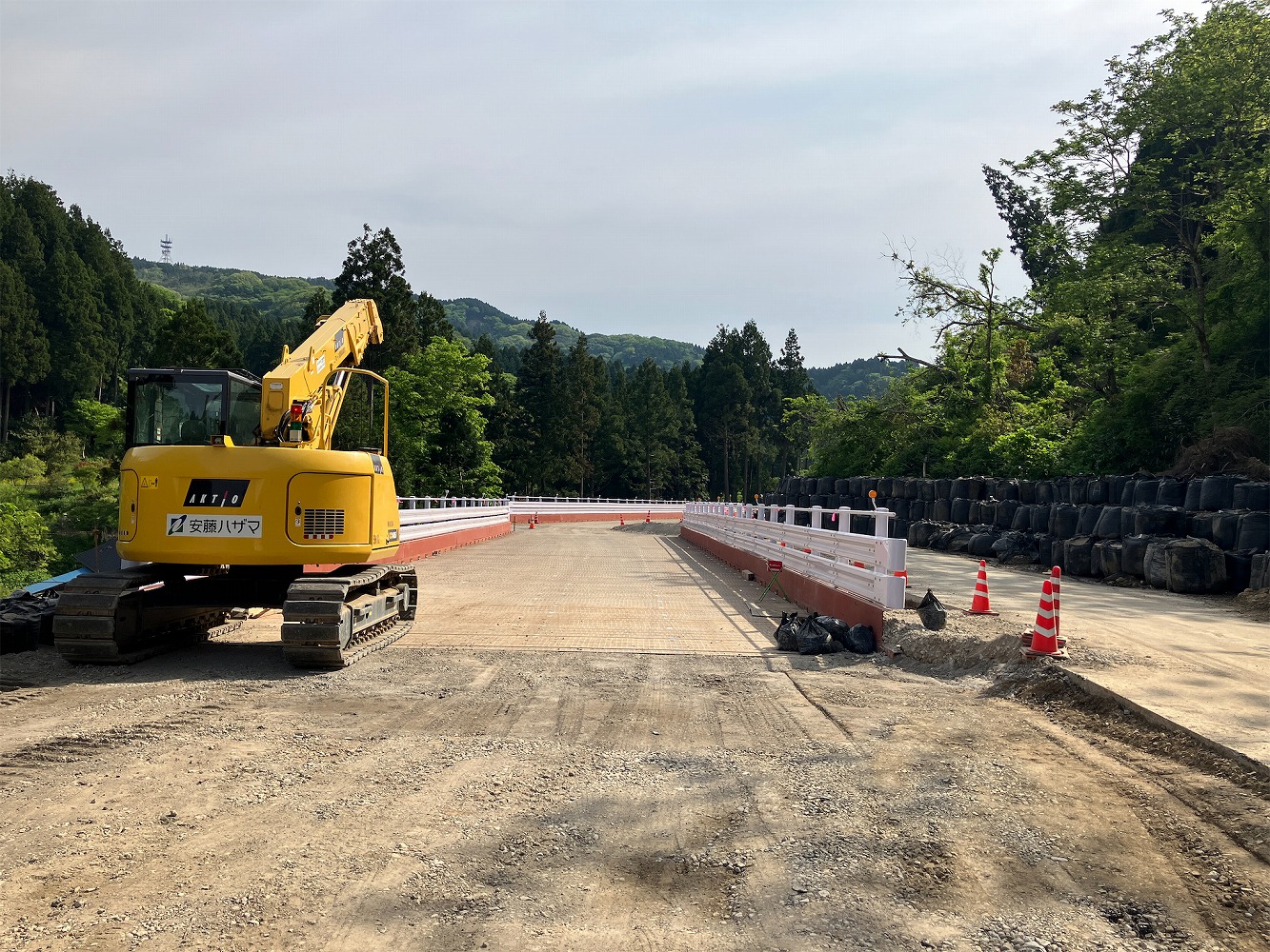 3号橋は地震の影響で現道が一部崩落したため、崩落個所を繋ぐべく、橋長65mの仮橋を架設した。ここは豪雨の影響はなく、「施工も苦労せず架けることができた」(安藤・間)。
