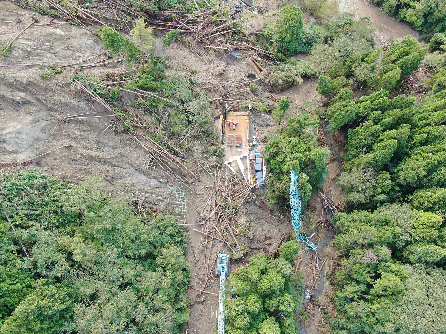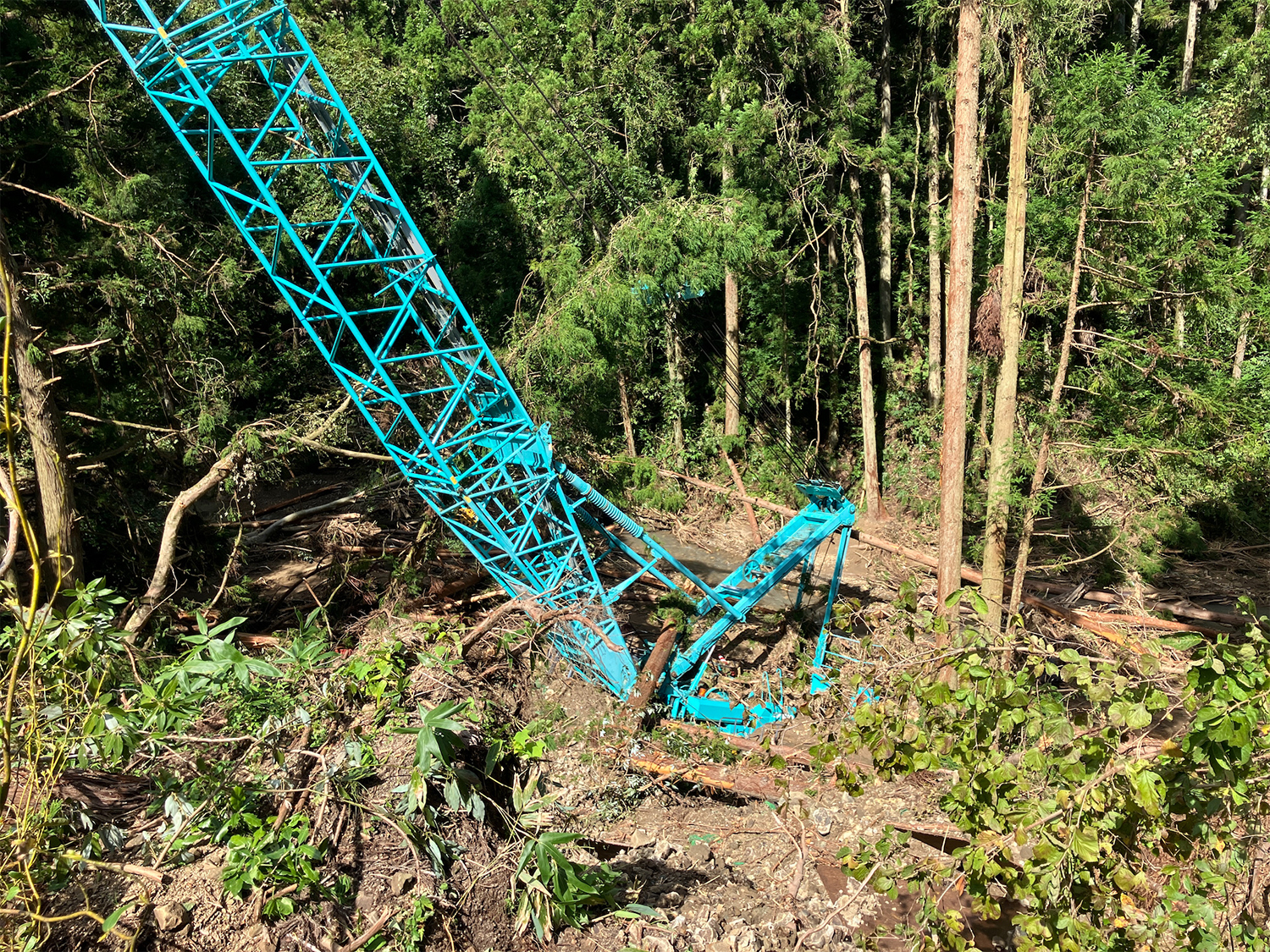 2号橋 豪雨で仮設備と150tCCを土砂崩壊に巻き込まれて失う