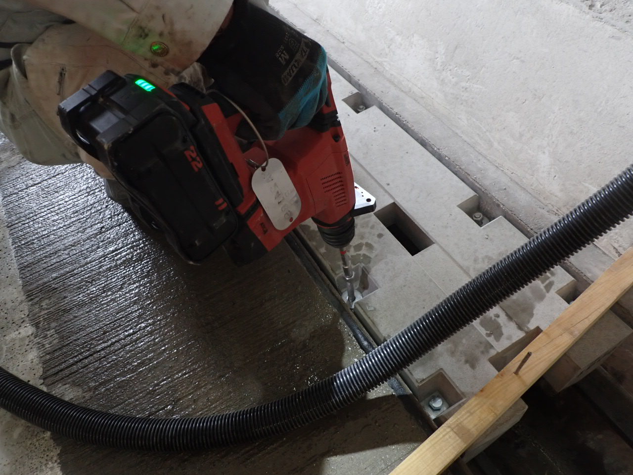 同蓋はアンカーボルトで固定するが、内側に高さ調整用ボルト、角部に固定用ボルトを配置した。これは、「ワイヤーソーの水平切断の精度は高いものの、どうしても小規模な段差が発生することから高さ調整ボルトを使用することで、蓋の高さが一定になるようコントロールし、蓋と円形水路の切断面との上下の隙間については無収縮モルタルを打設して埋めることで対応」(岩橋氏)した。
