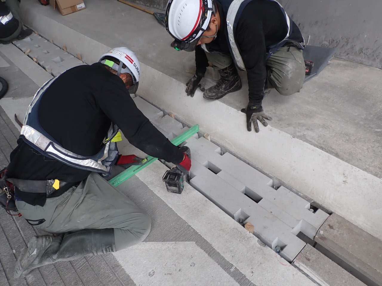 課題は蓋上面に突出したアンカーボルトの保護である。無収縮モルタルで埋めて保護するが、そのかぶり厚は10~20mmと薄く、ここに工事車両が載荷すれば、早期にひび割れを生じさせ、そこから凍結防止剤入りの水が浸入することにより劣化する可能性がある。その点は阪神高速技術も懸念しており、ボルトの素材も含め、より耐久性を高める策を検討中だ。