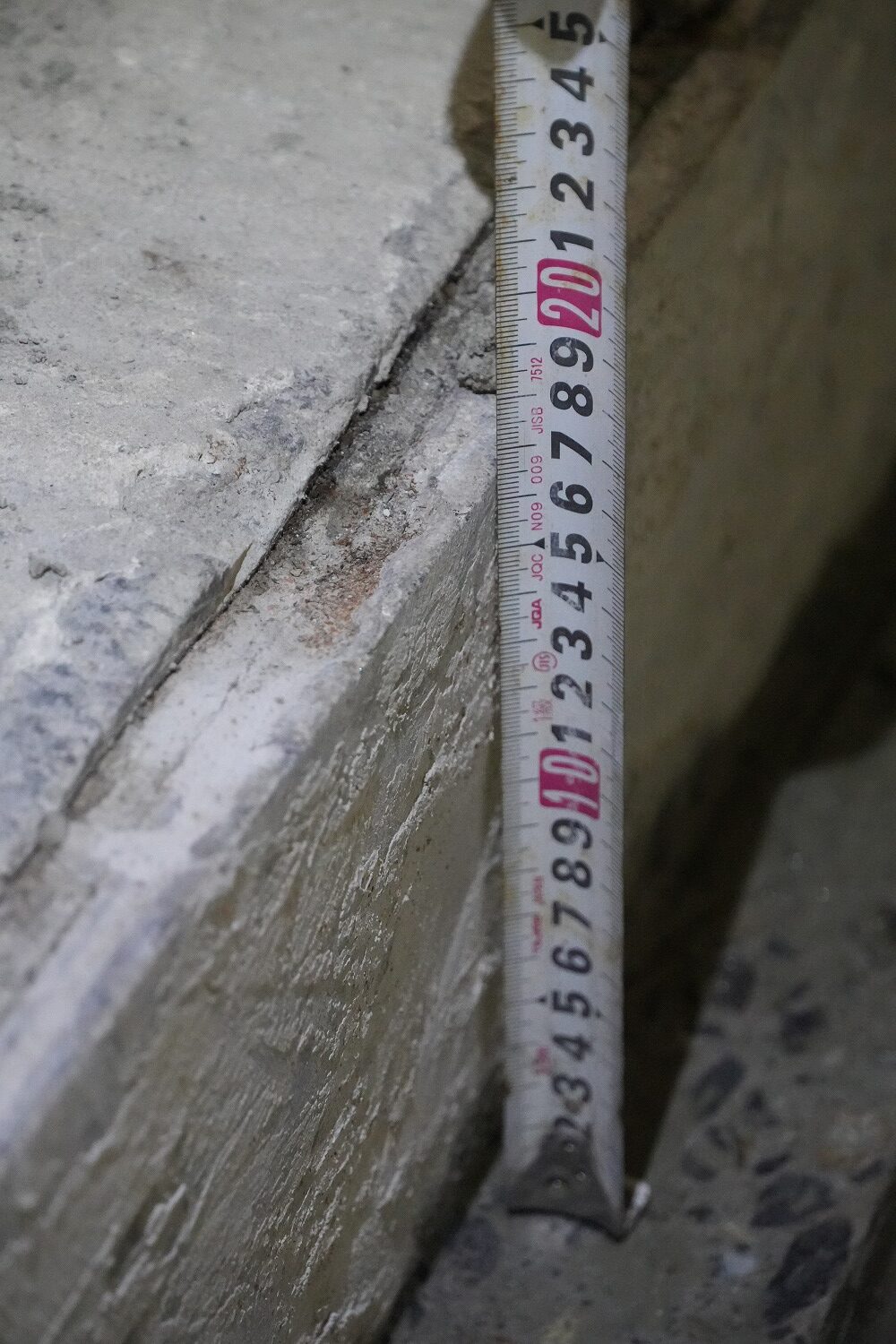 SCS工法はまず墨出しし、さらにスリット工を施工する
