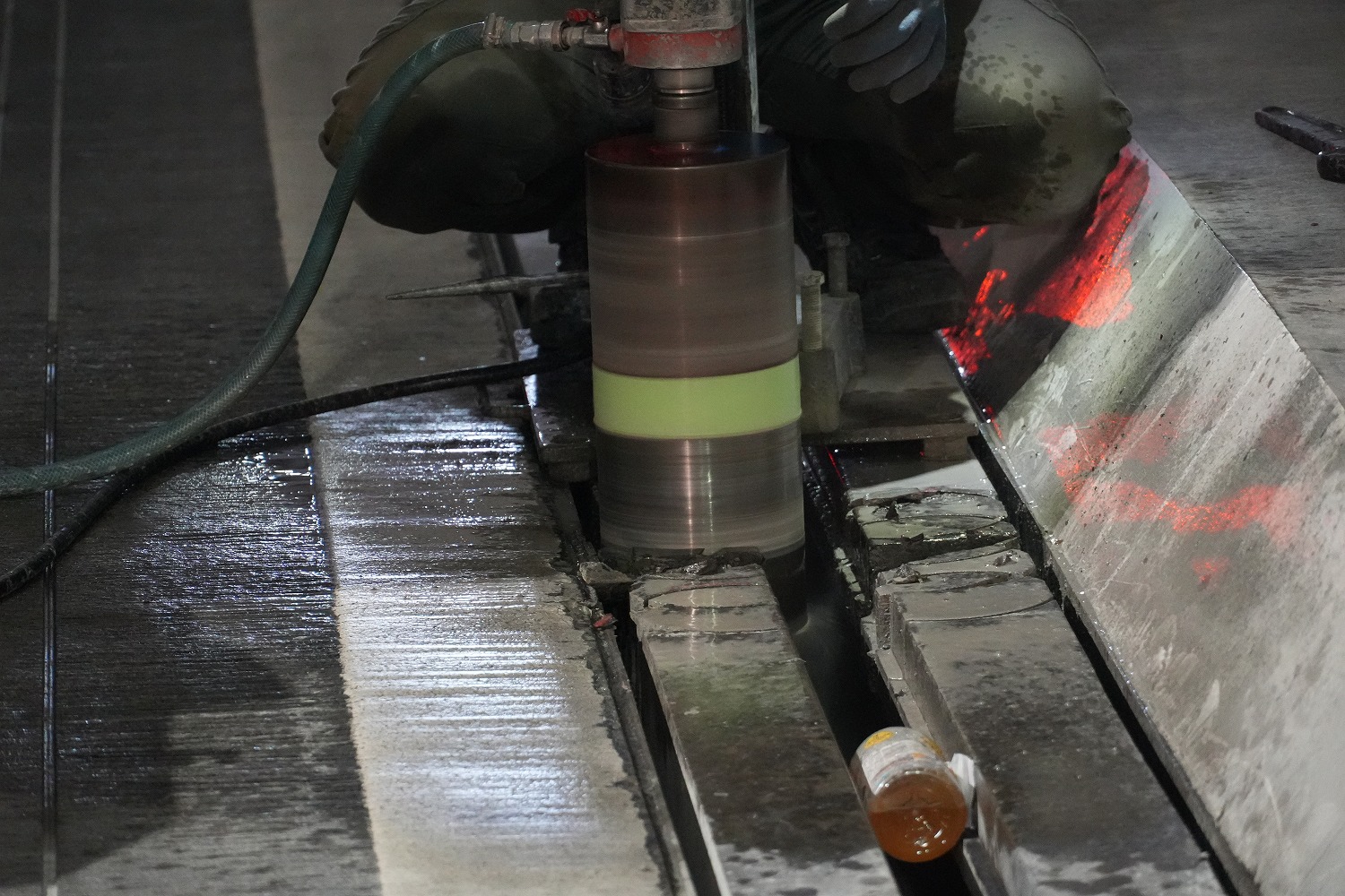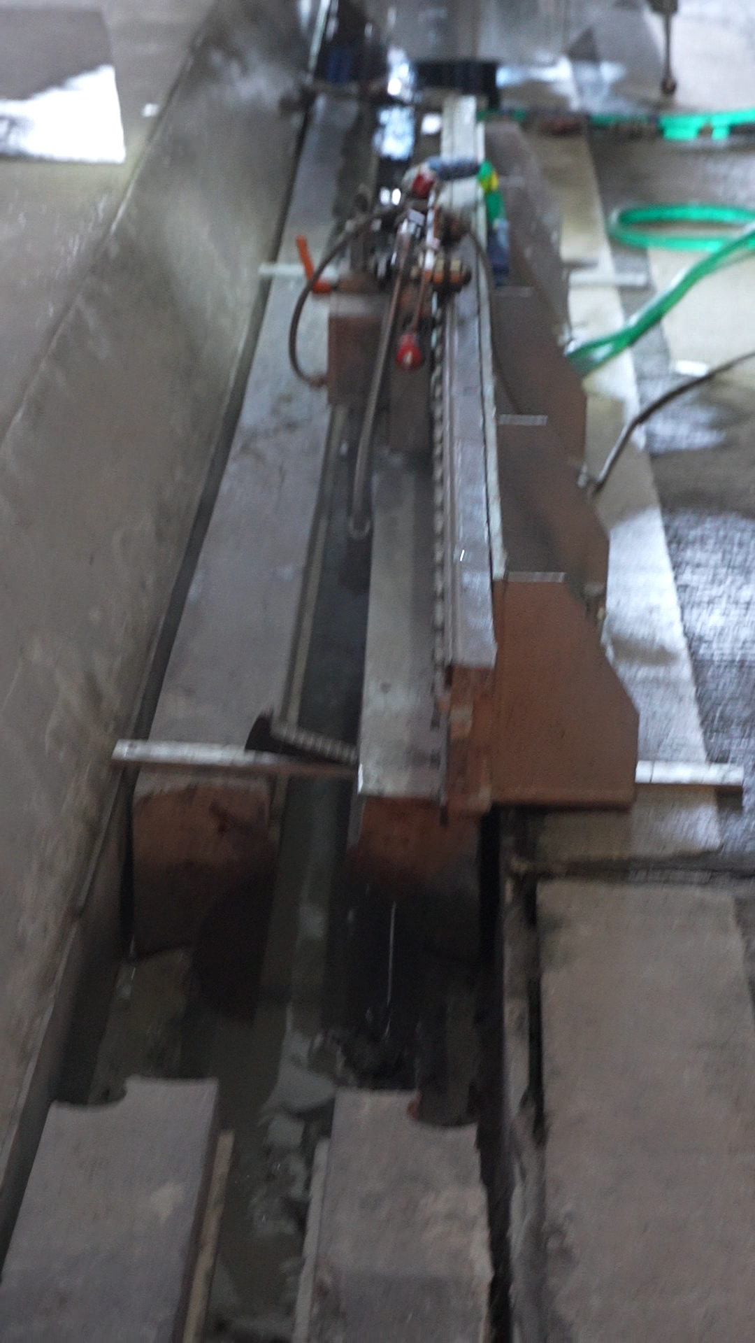 次いで開口部を作成し、ワイヤーソー工で切断していく