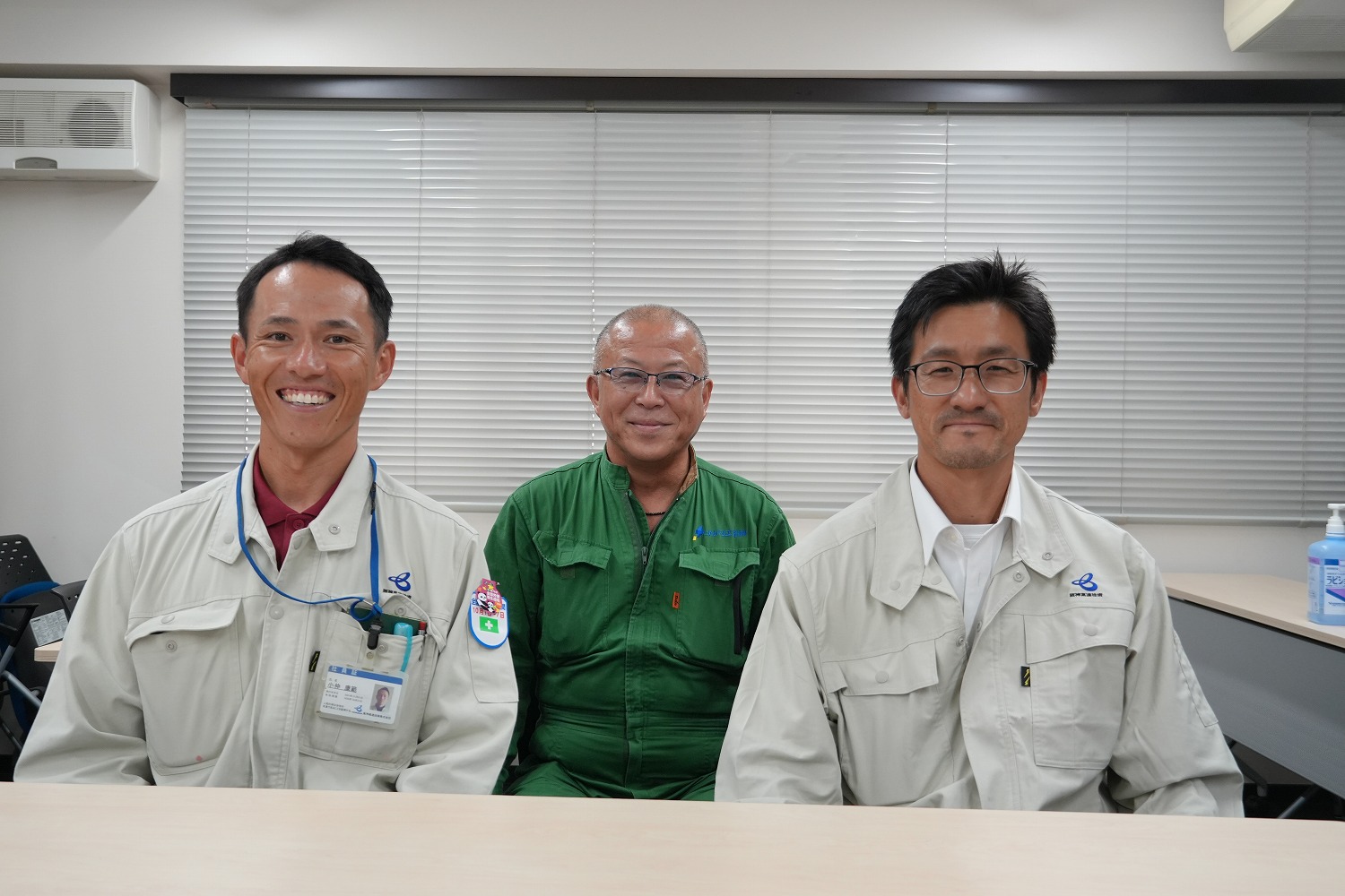 左から工法を共同開発した阪神高速技術の小仲氏、ナガタ工業の福島社長、阪神高速技術の岩橋氏