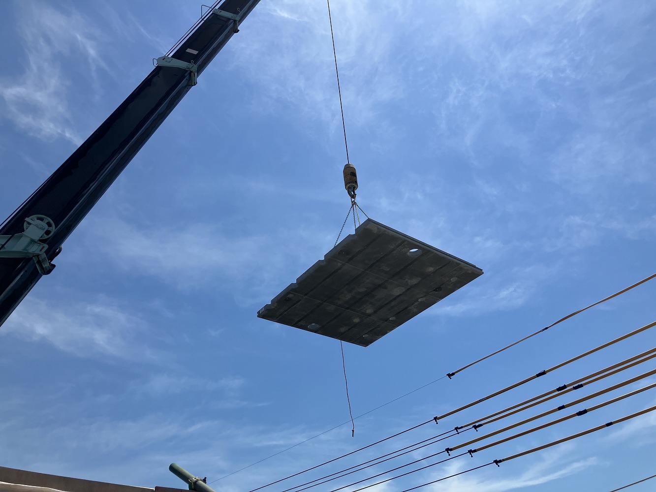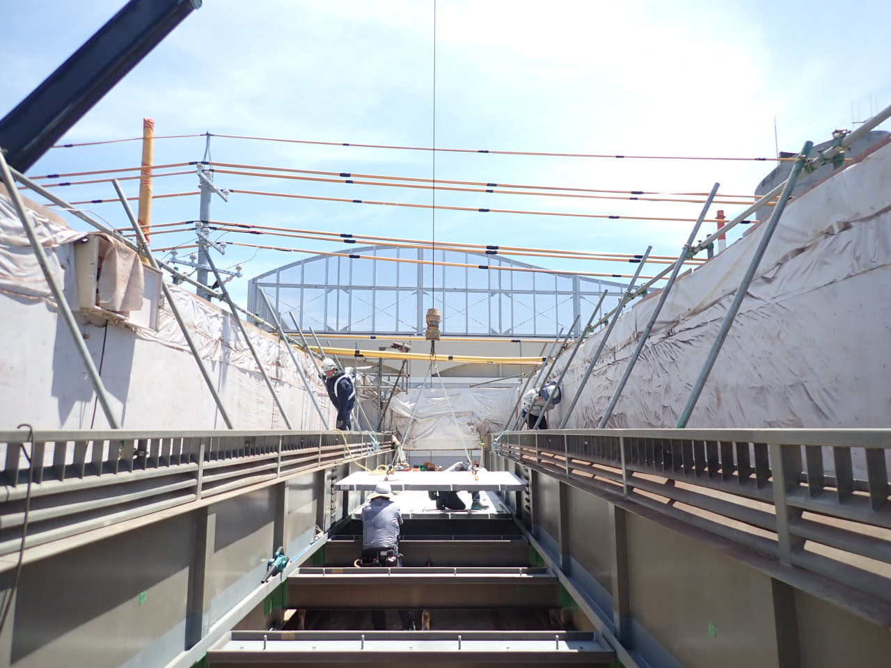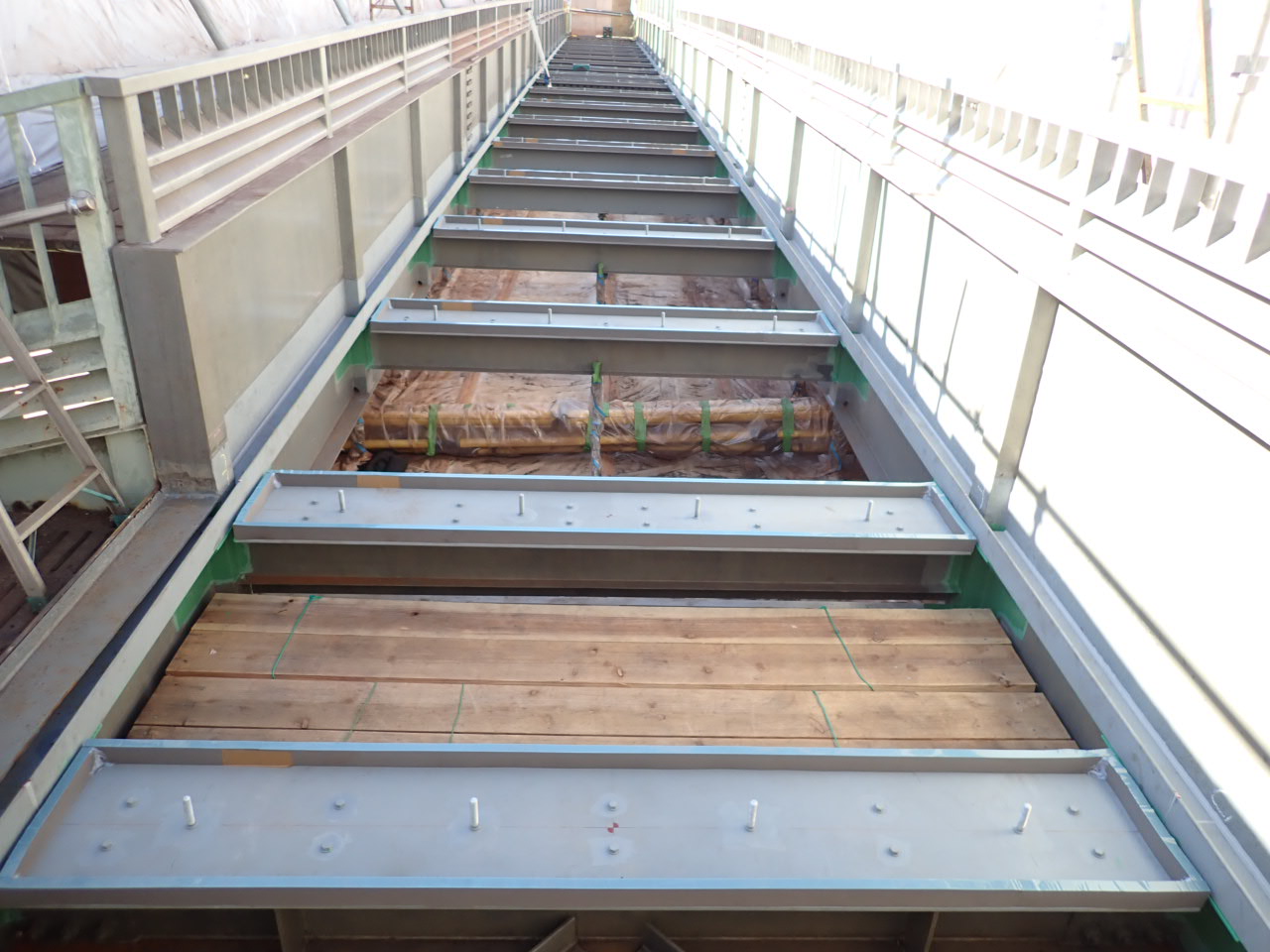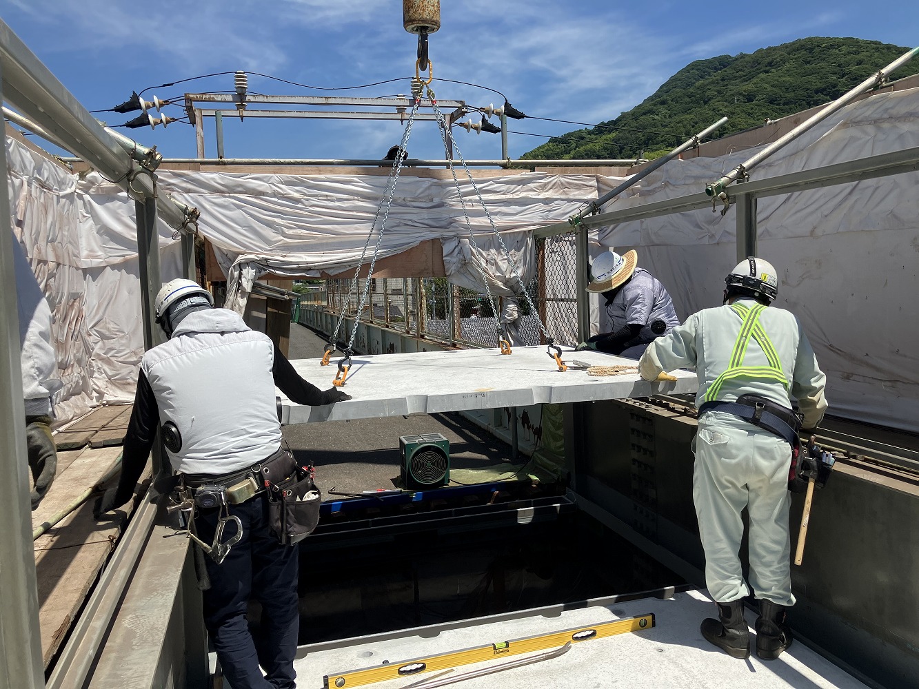 一部の床版はローラーとチェーンブロックを用いて人力により移動・架設