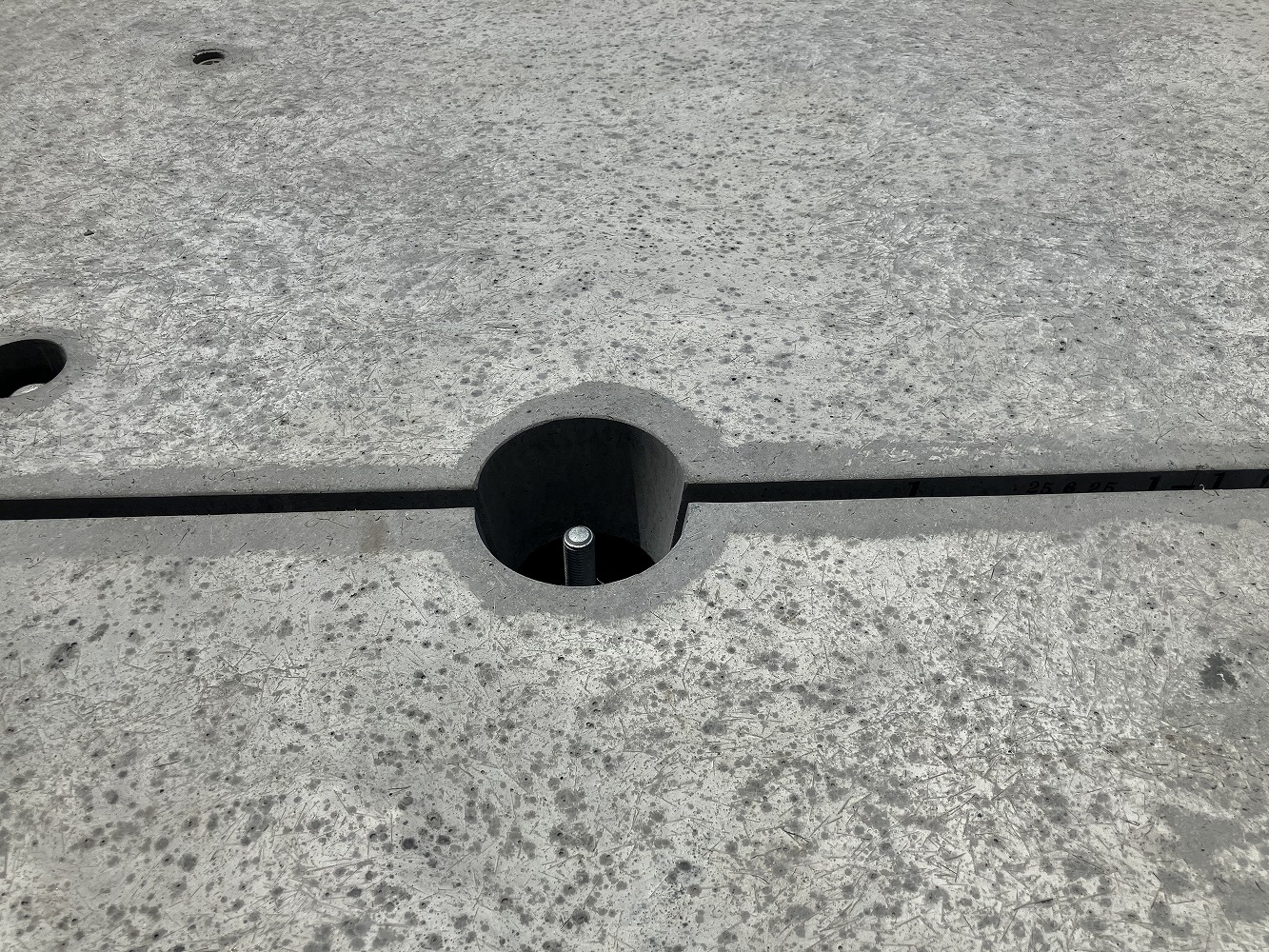 スタッドジベルとの接続部が半円状になっており、隣接する床版が合わさって円状になる