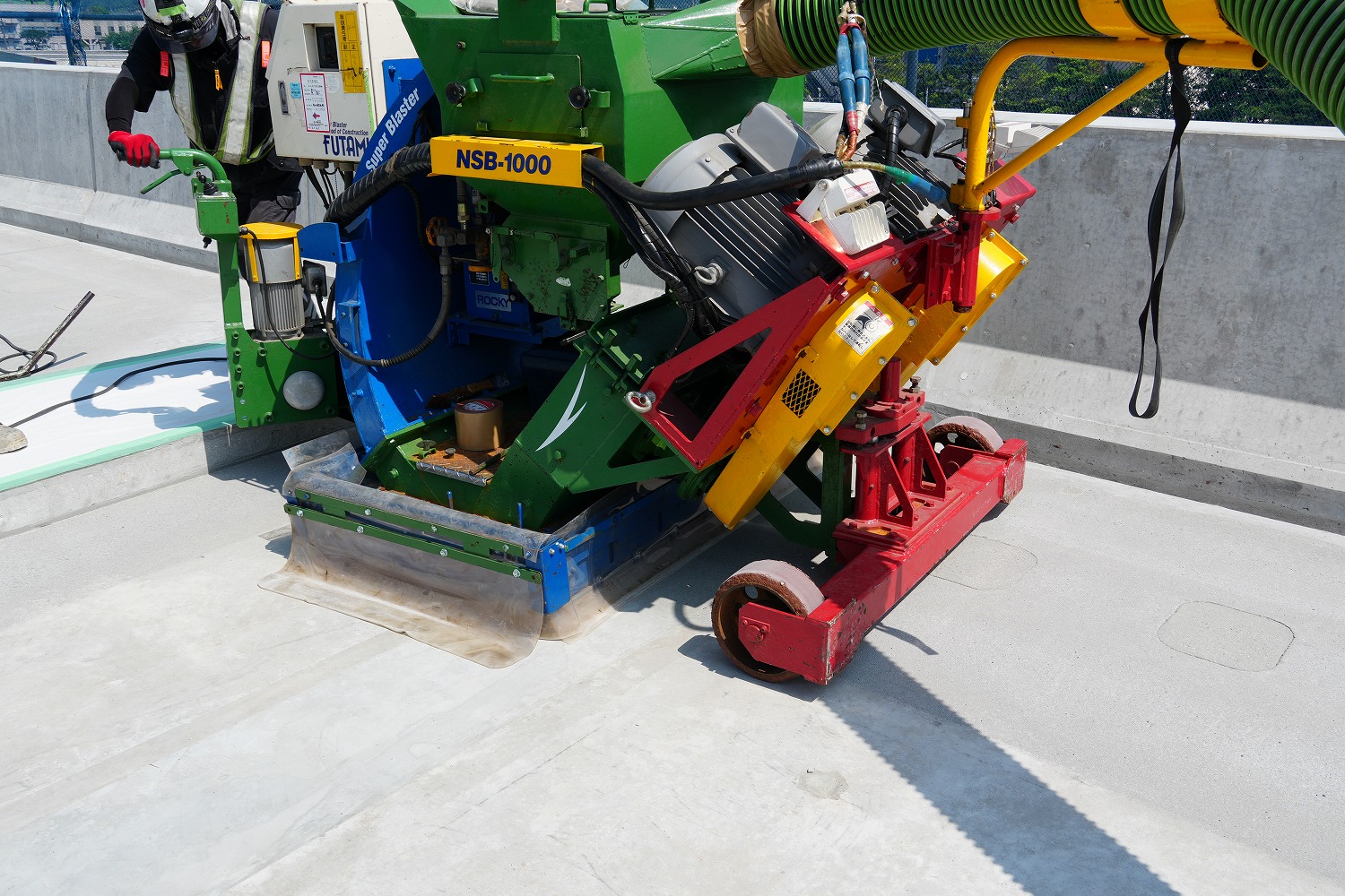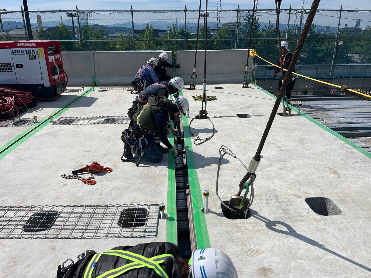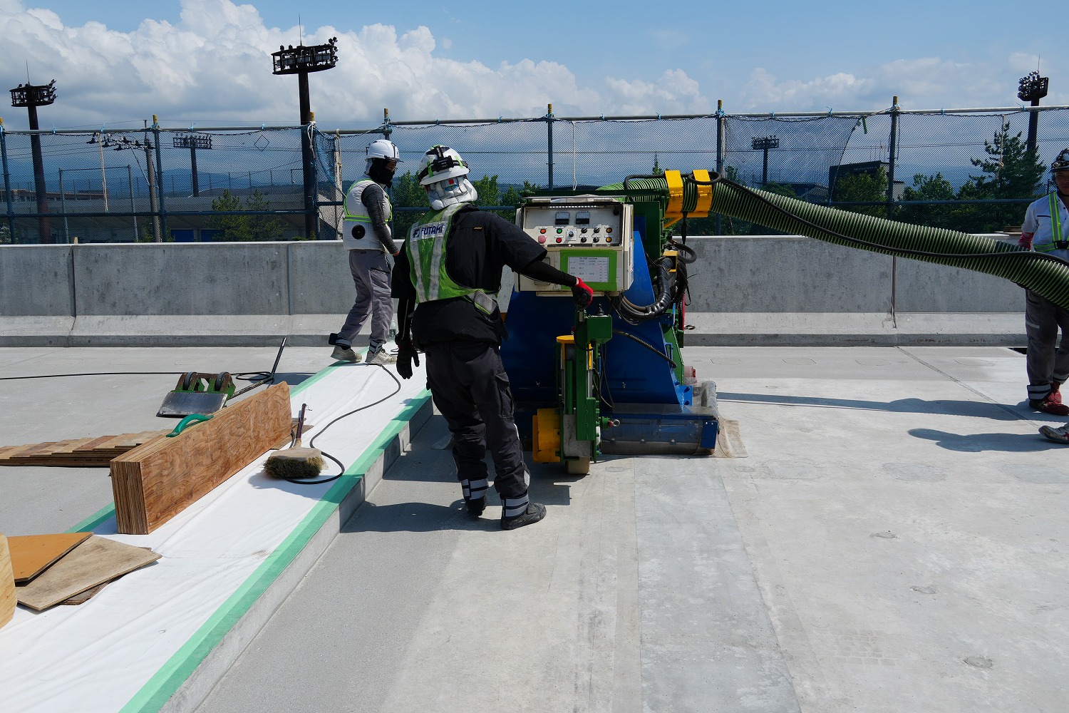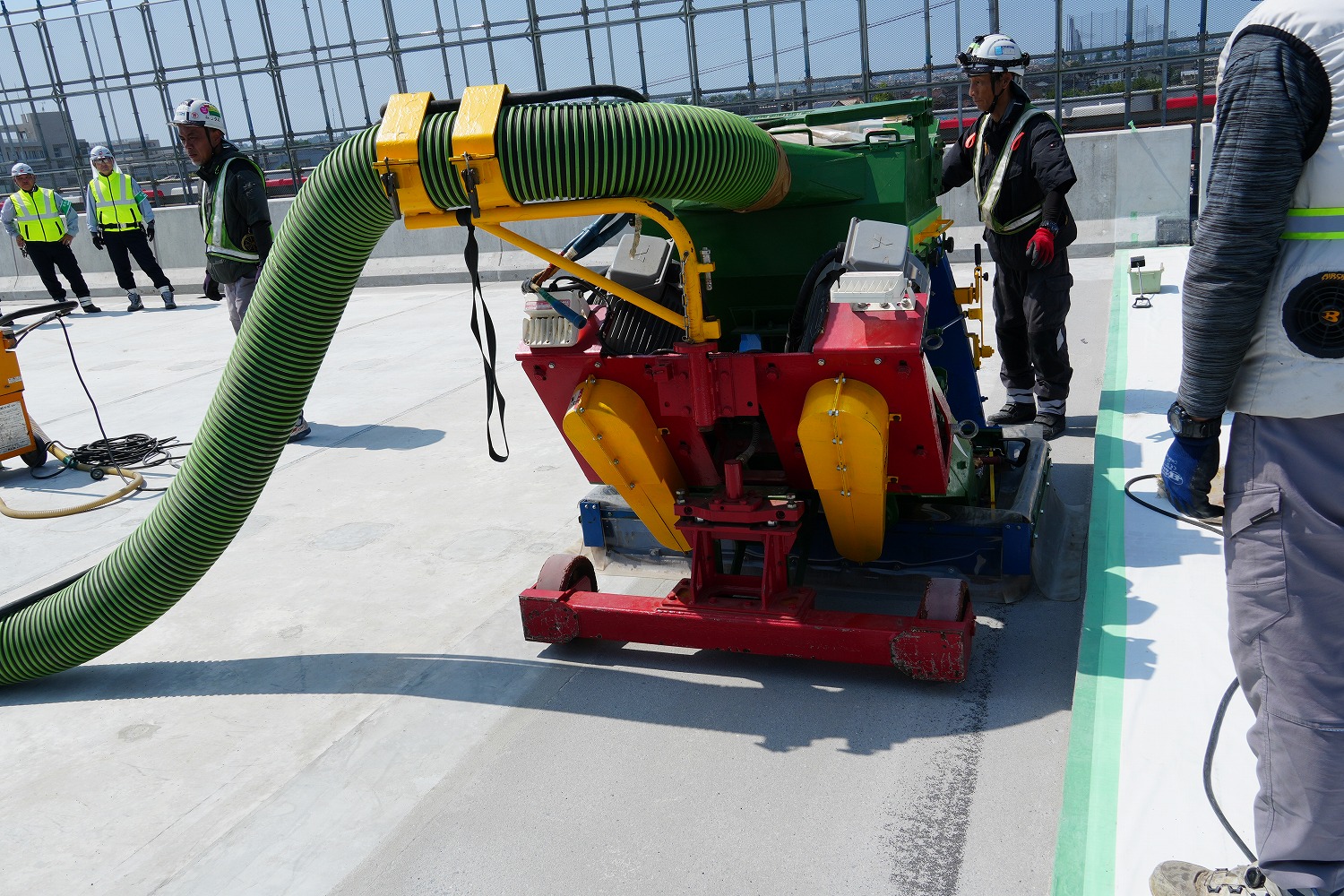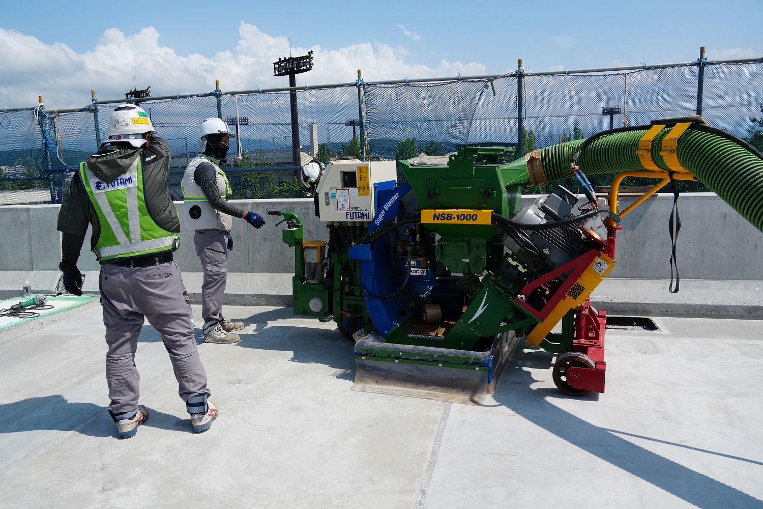 中央部はショットブラストで研掃した(二次協力会社はフタミ) (井手迫瑞樹撮影)