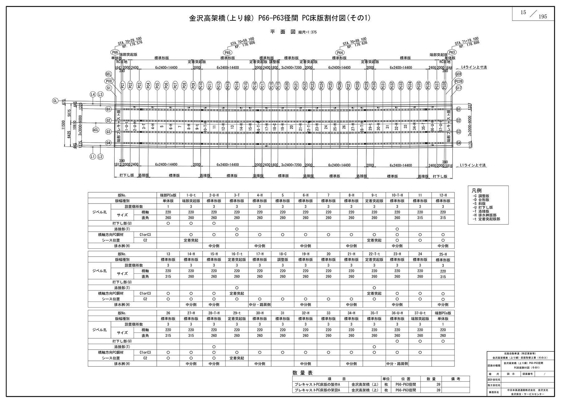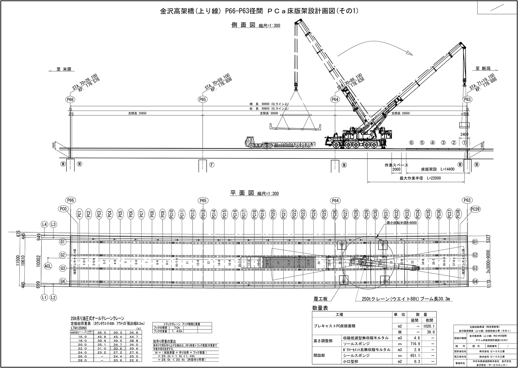 今次工事では新設床版パネル換算で79枚の床版(約2千m2)を取り替えている。その3工事全体では全部で約250枚、約6千㎡の床版取替を実施する予定だ(P66-P60が完了すれば約4千m2が完了)。