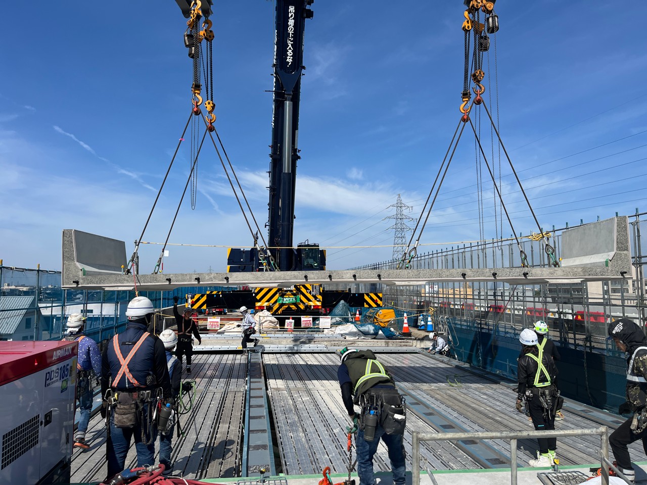 元請はピーエス・コンストラクション。一次協力会社はKITAGAWA(撤去・架設)、城西運輸(クレーン)、北川ヒューテック(床版防水・舗装)、第一カッター興業(切断)。ヤマダインフラテクノス(塗装塗替)。