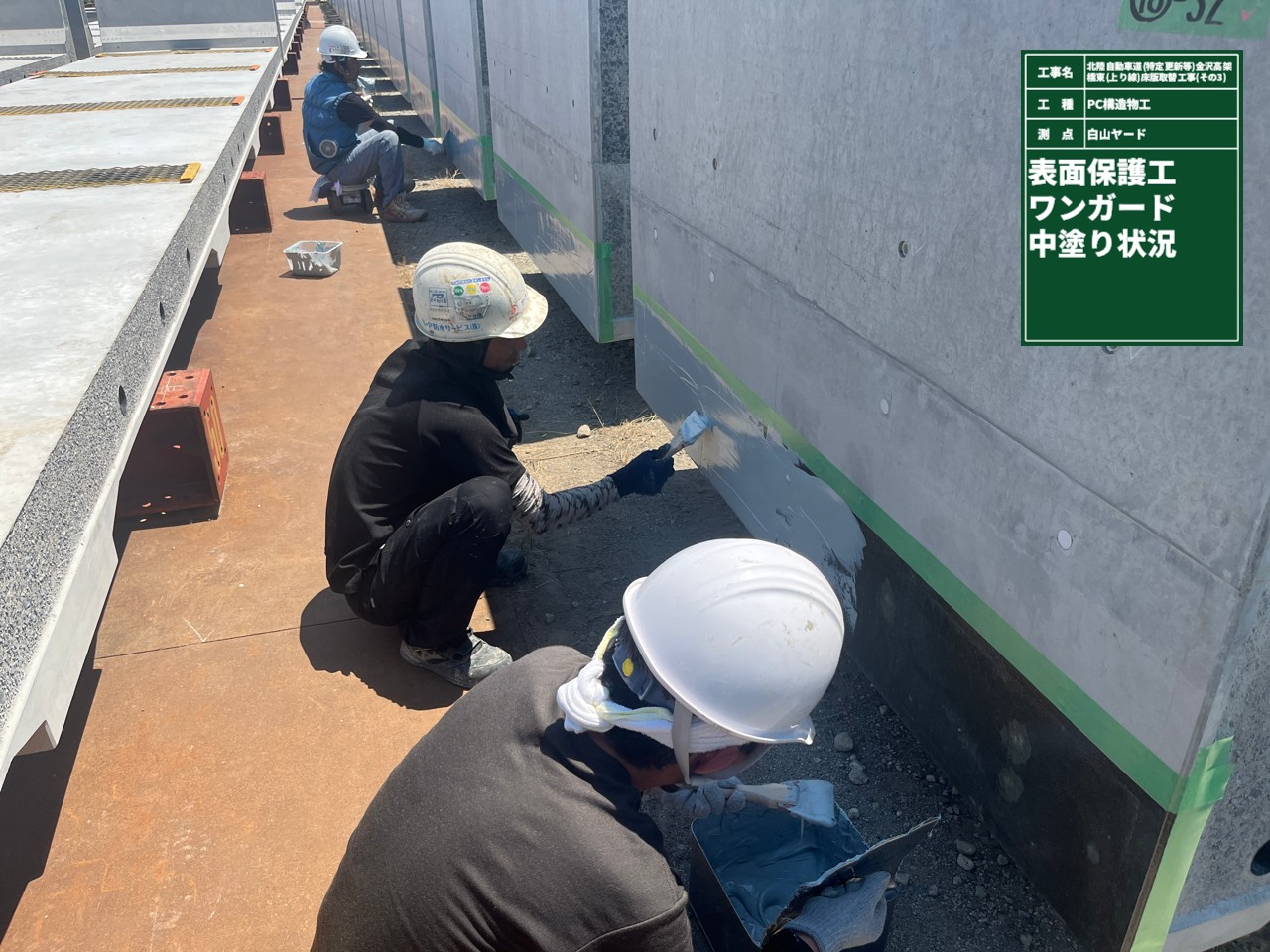 なお、PCの横締め部には、予め現場仮置き段階で「RTワンガード」工法による保護塗装を行うことで、床版の耐久性を上げる手法を採用していた。