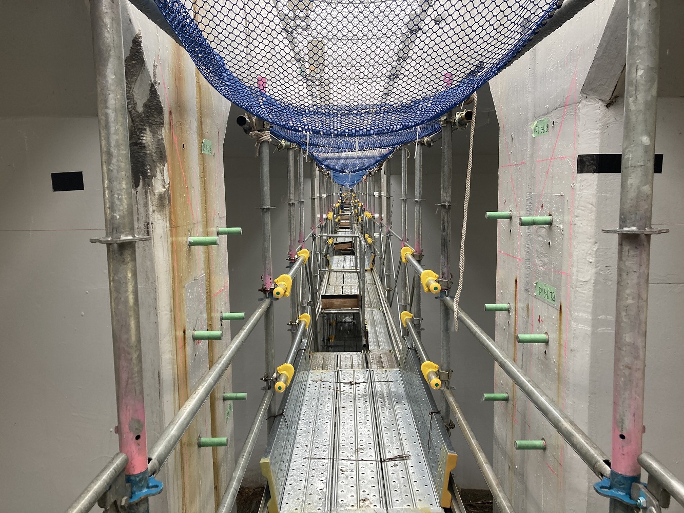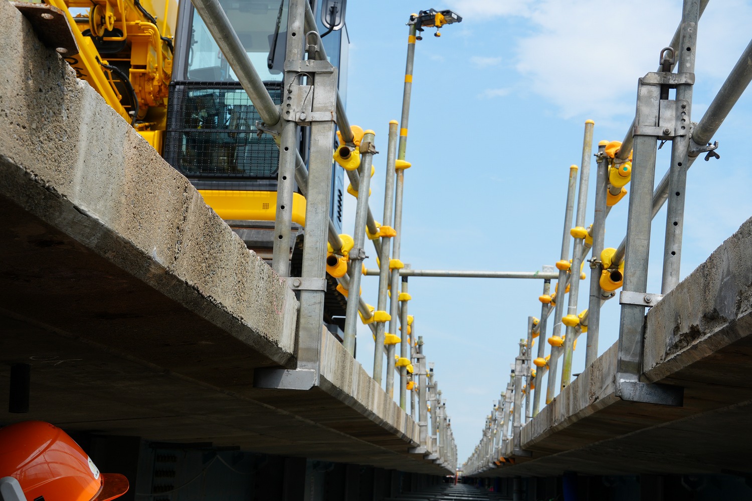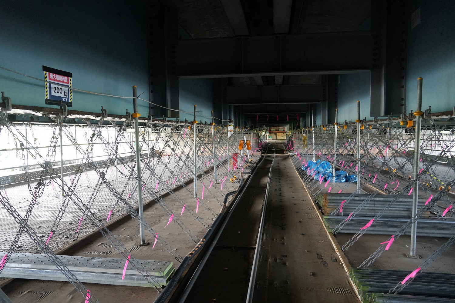 足場はスパイダーパネルを採用していた。運搬用のレールも敷かれてあった