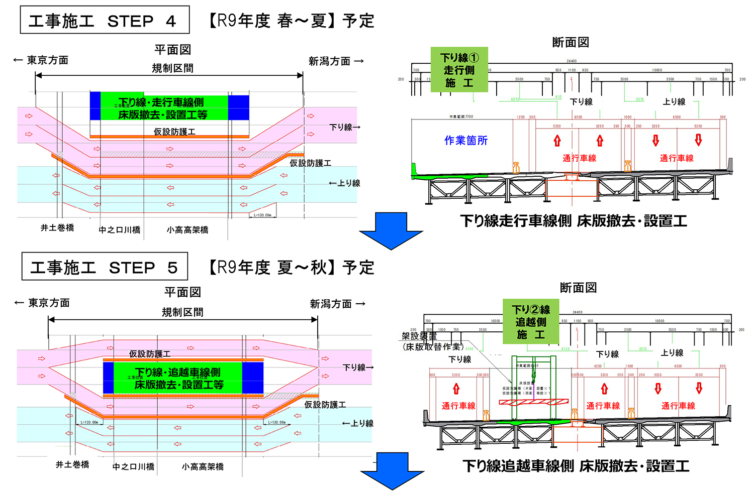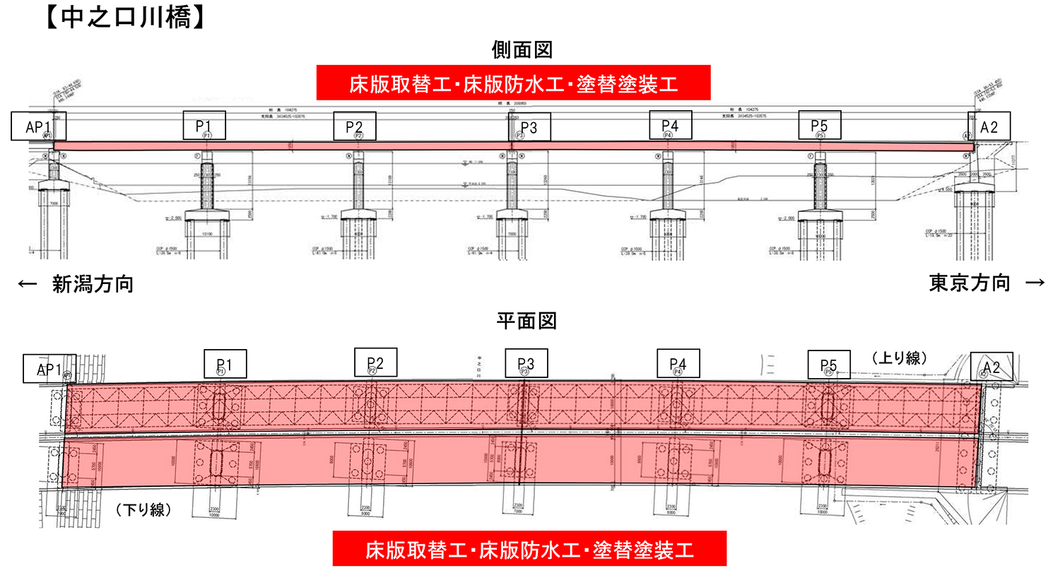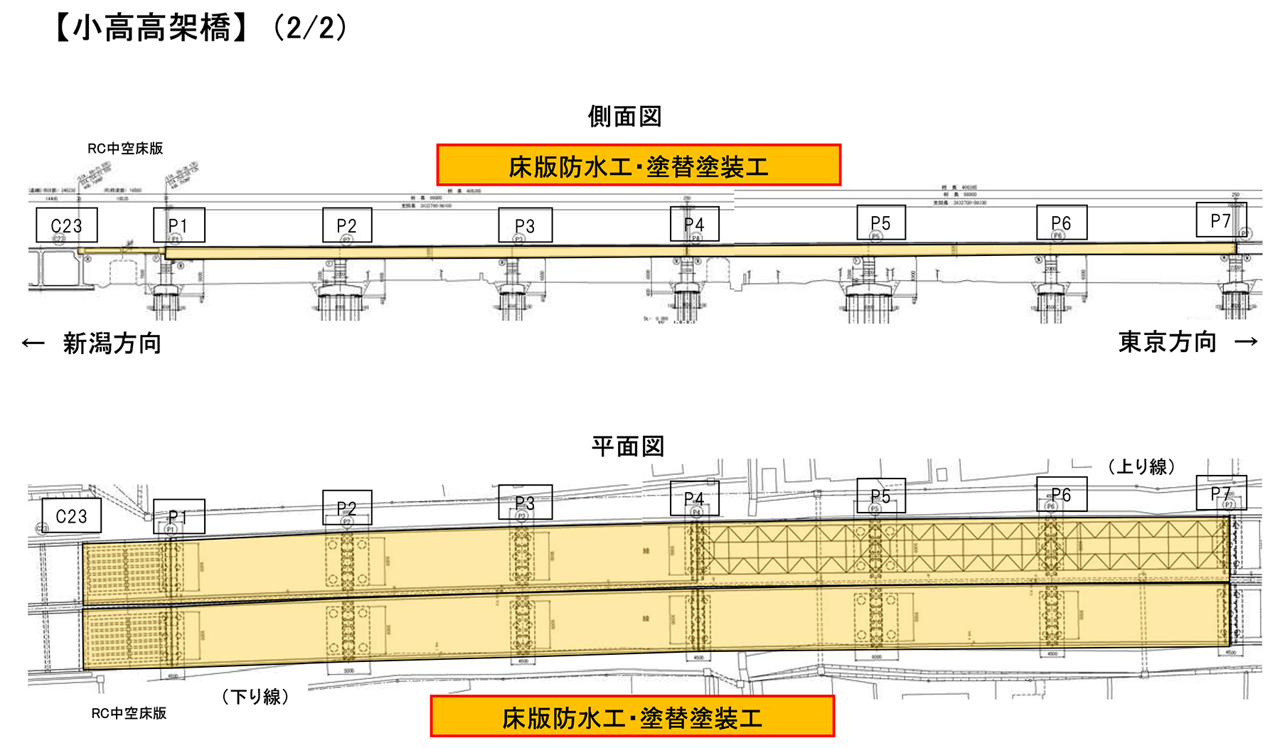 中之口川橋では全延長小高高架橋では上り3径間を床版取替
