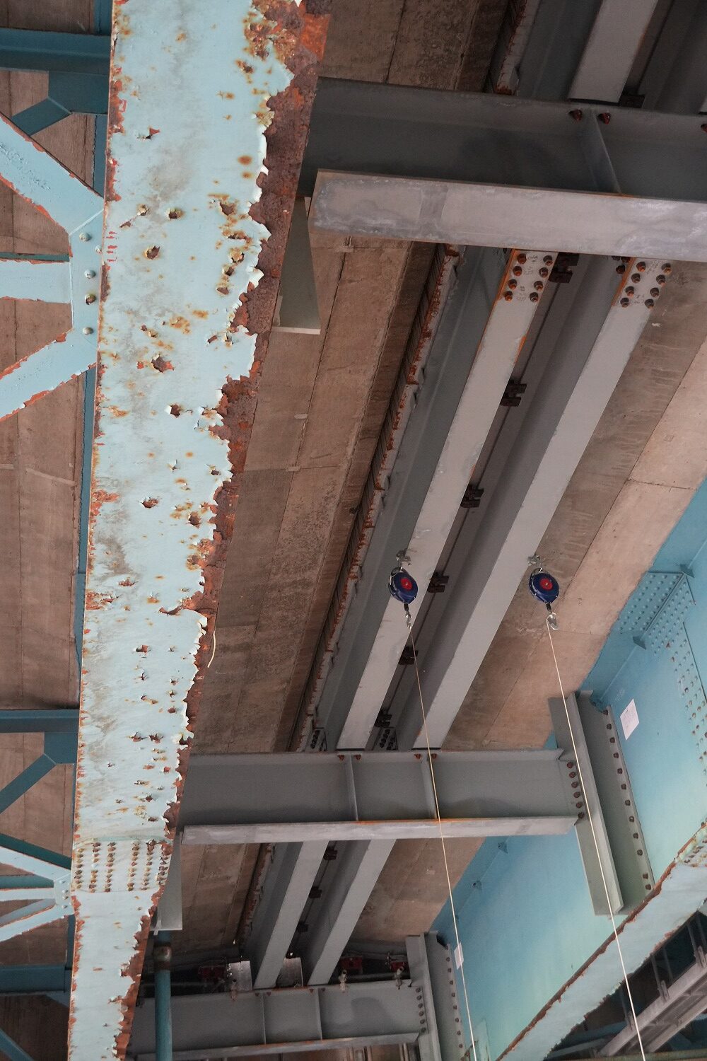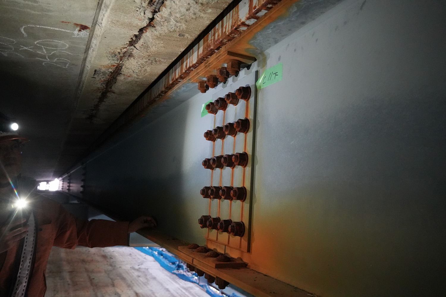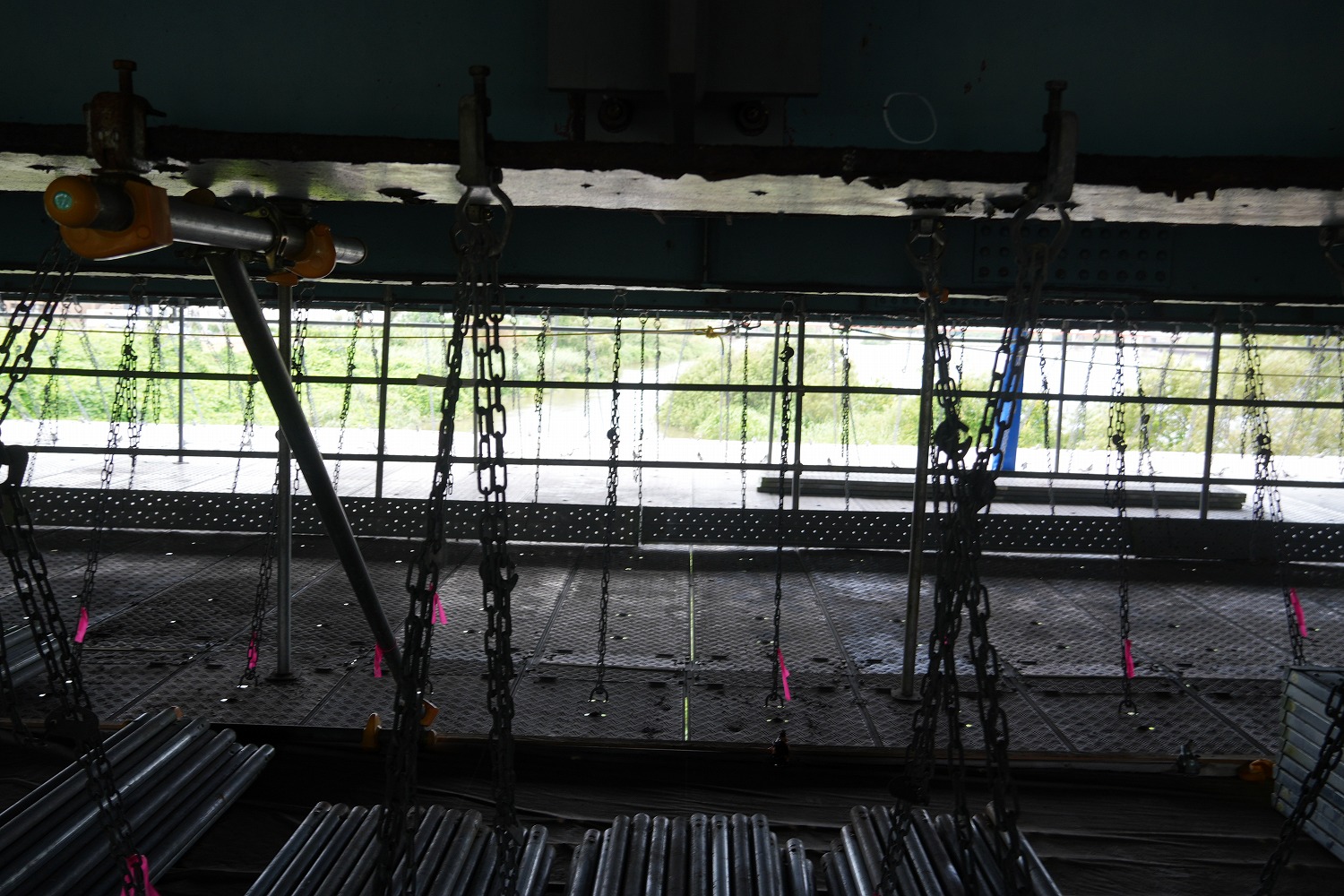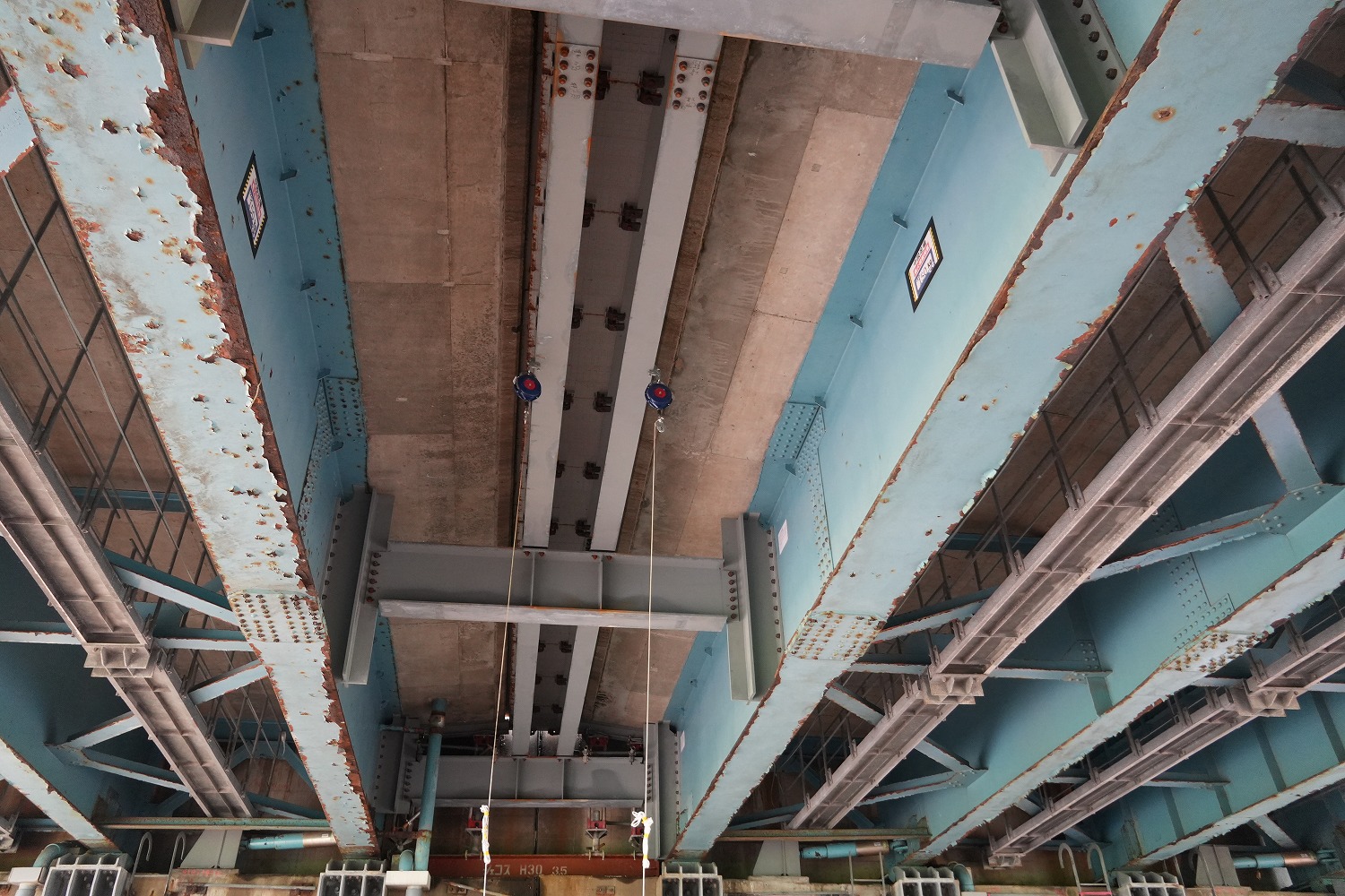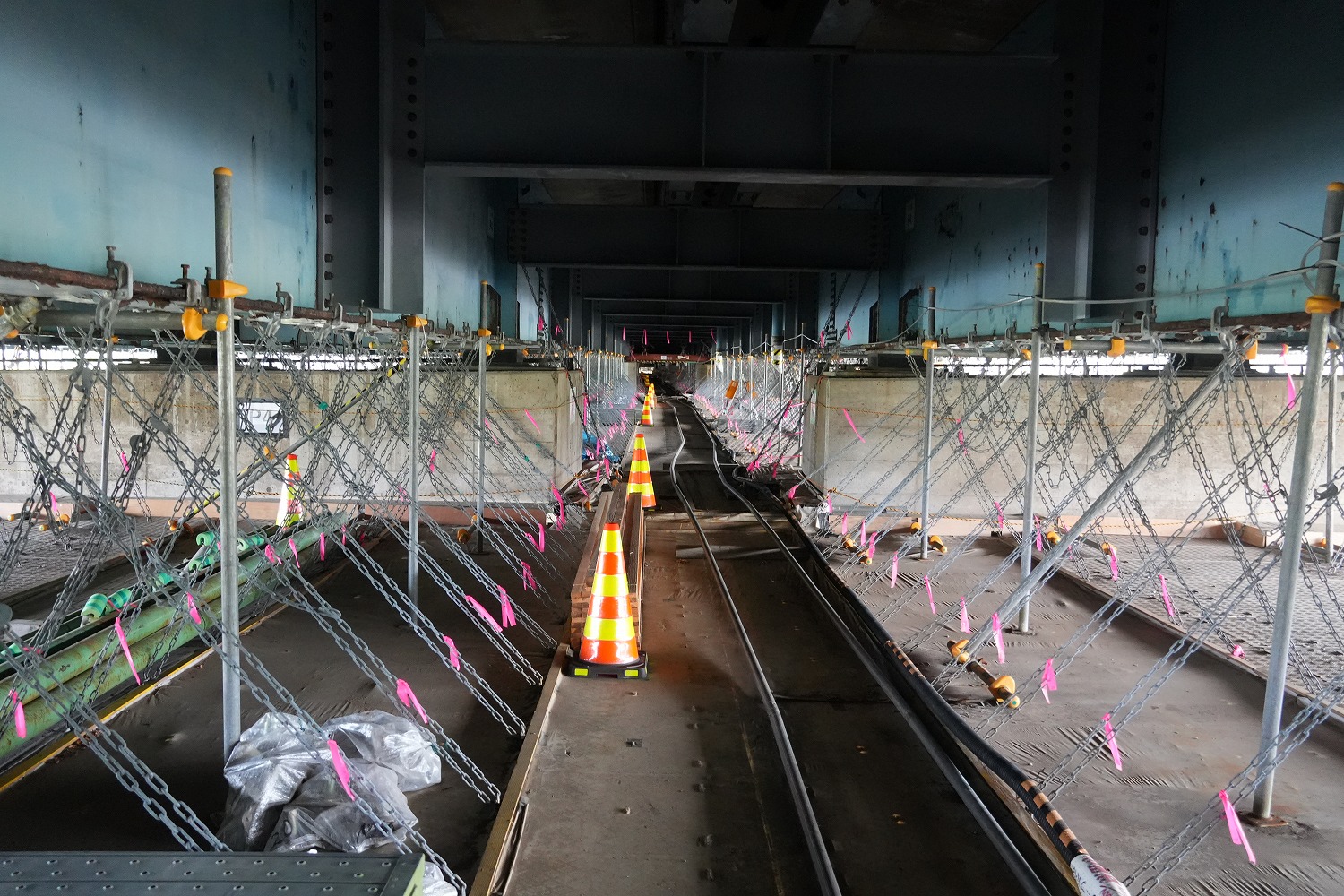 桁下から見た覆工板の設置状況(井手迫瑞樹撮影)
