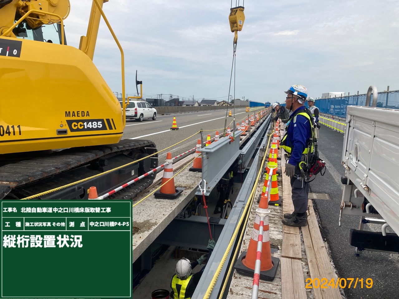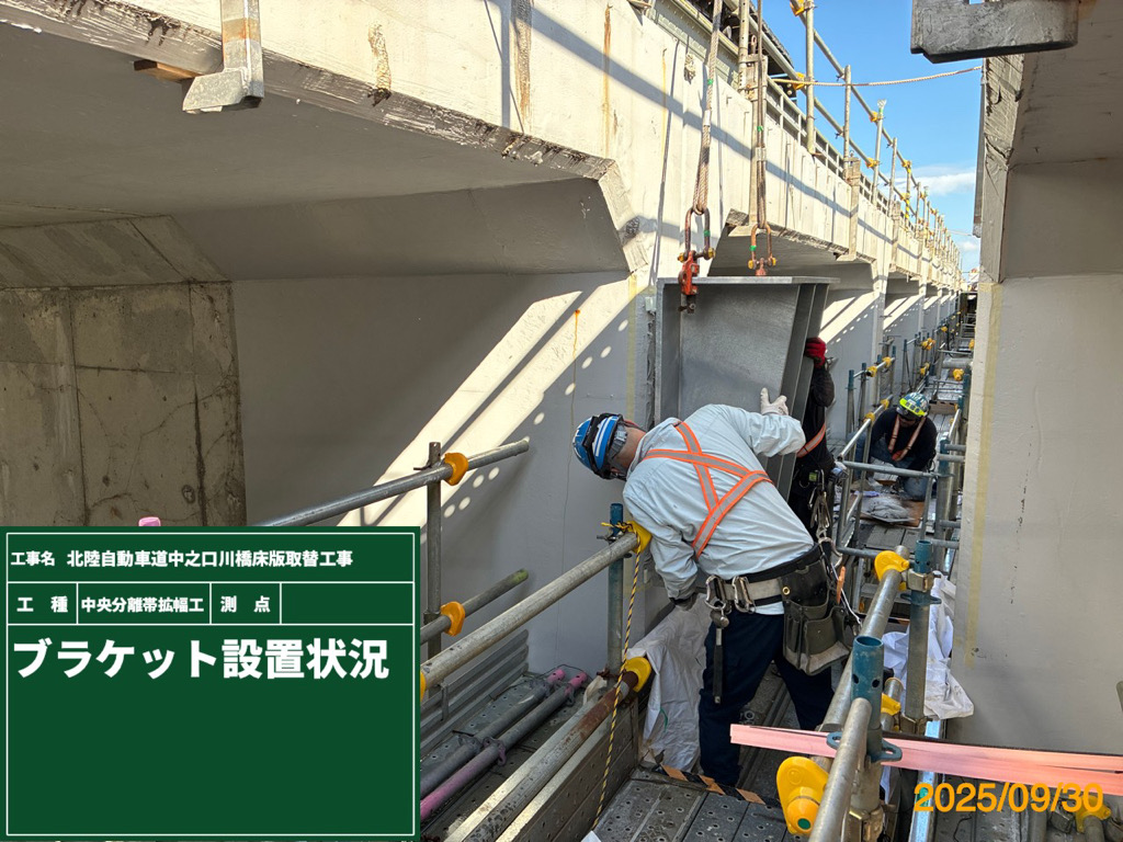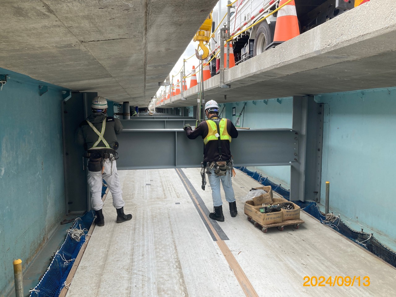 横桁の設置状況(右写真のみ井手迫瑞樹撮影)