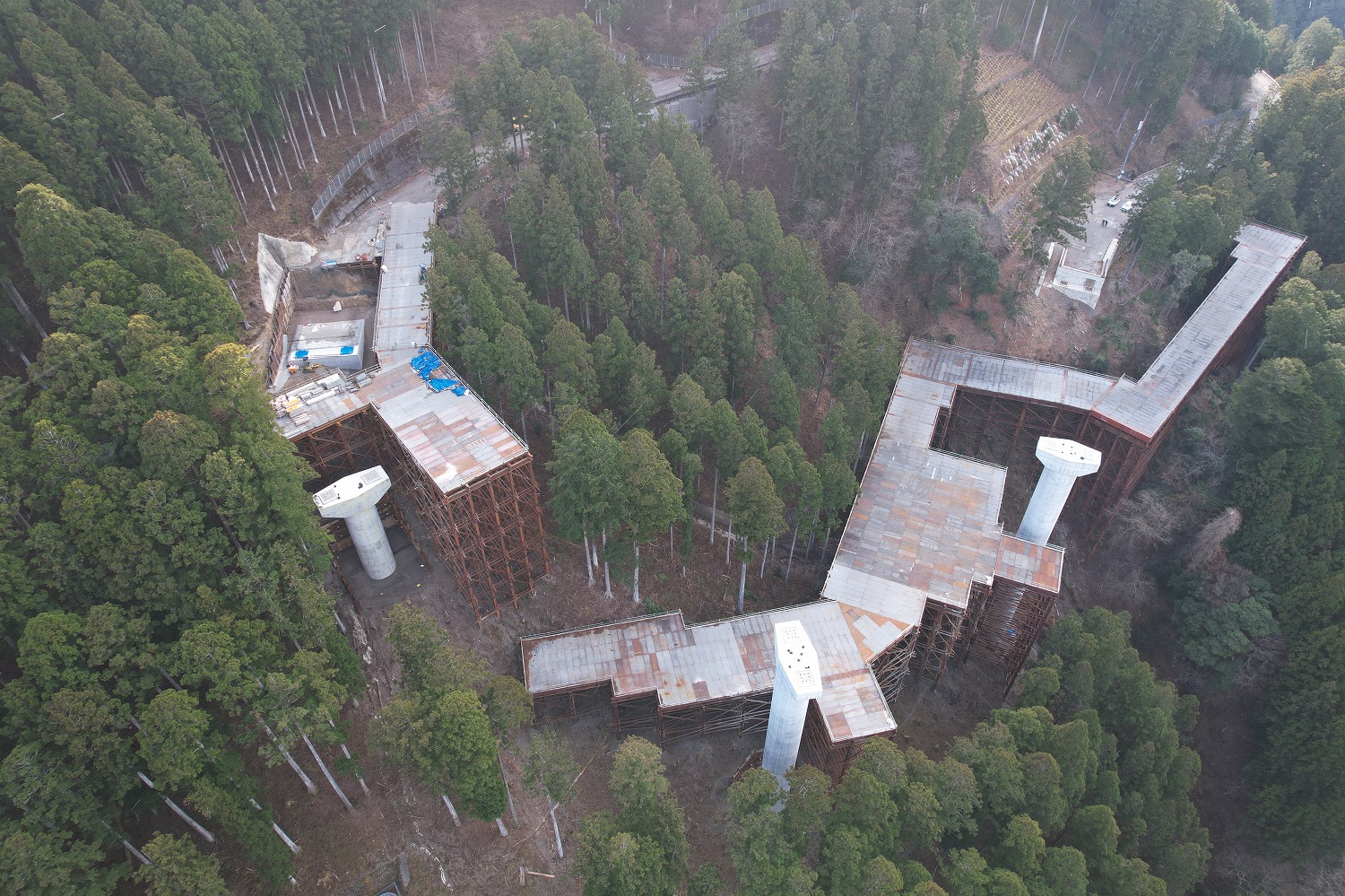 橋脚高はとても高く、桁を支えるベントもかなりの高さまで建て込む必要があった(井手迫瑞樹撮影)