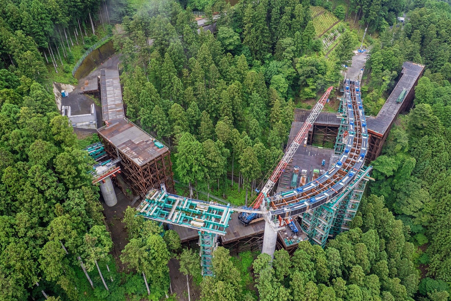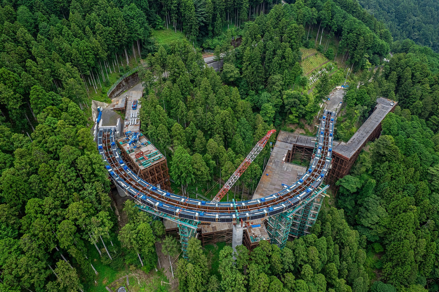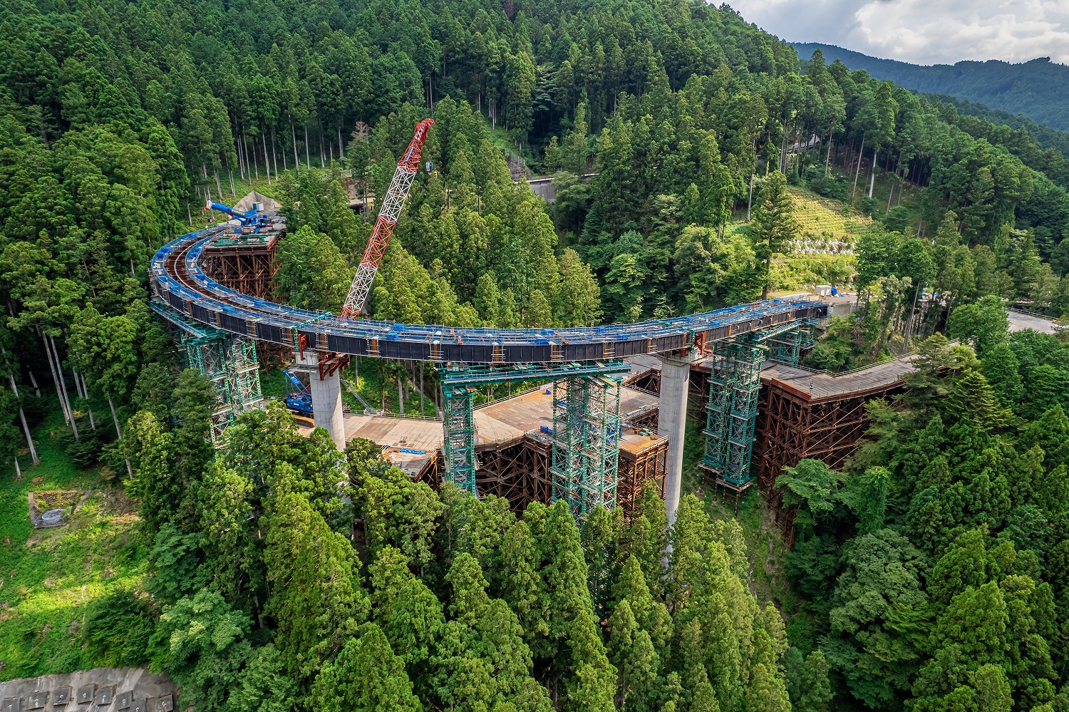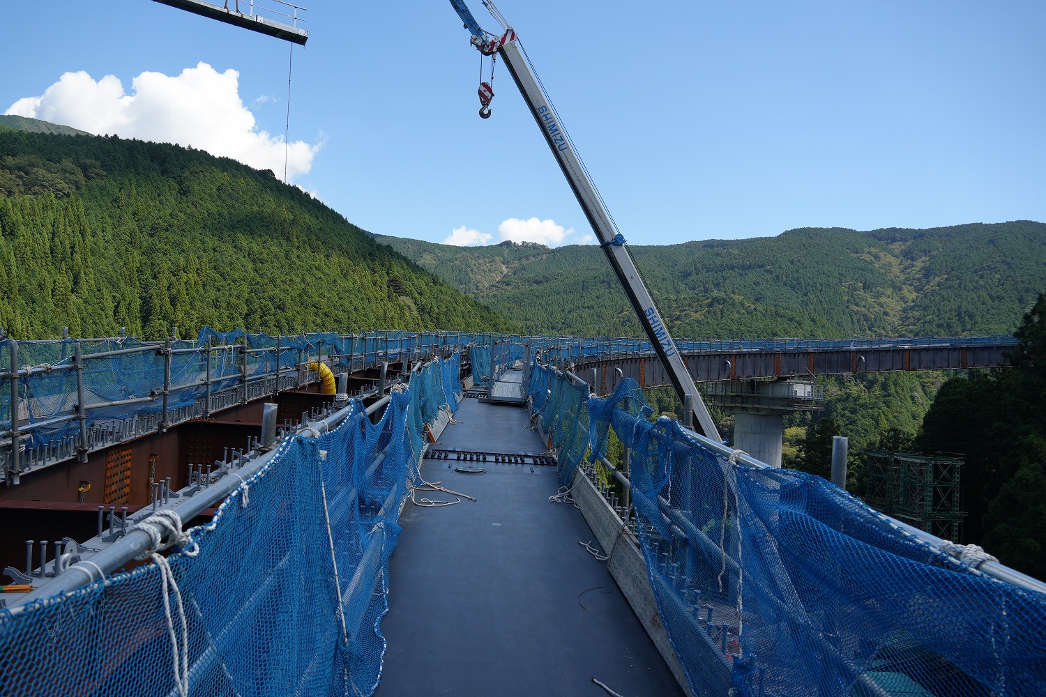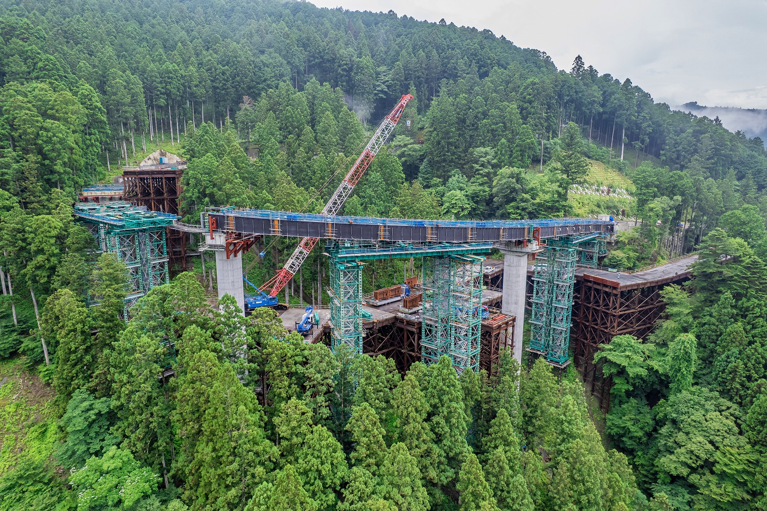 静岡県 日掛大橋 最小曲線半径が60m、最大縦断勾配7.5%の桁を架設