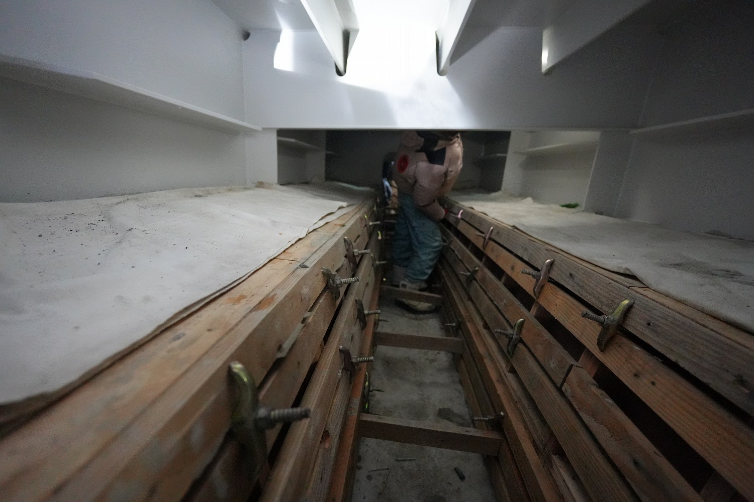 A2側支承は、よりG2の外側に反力がかかることを解析し、支承位置を外側にずらした(井手迫瑞樹撮影)