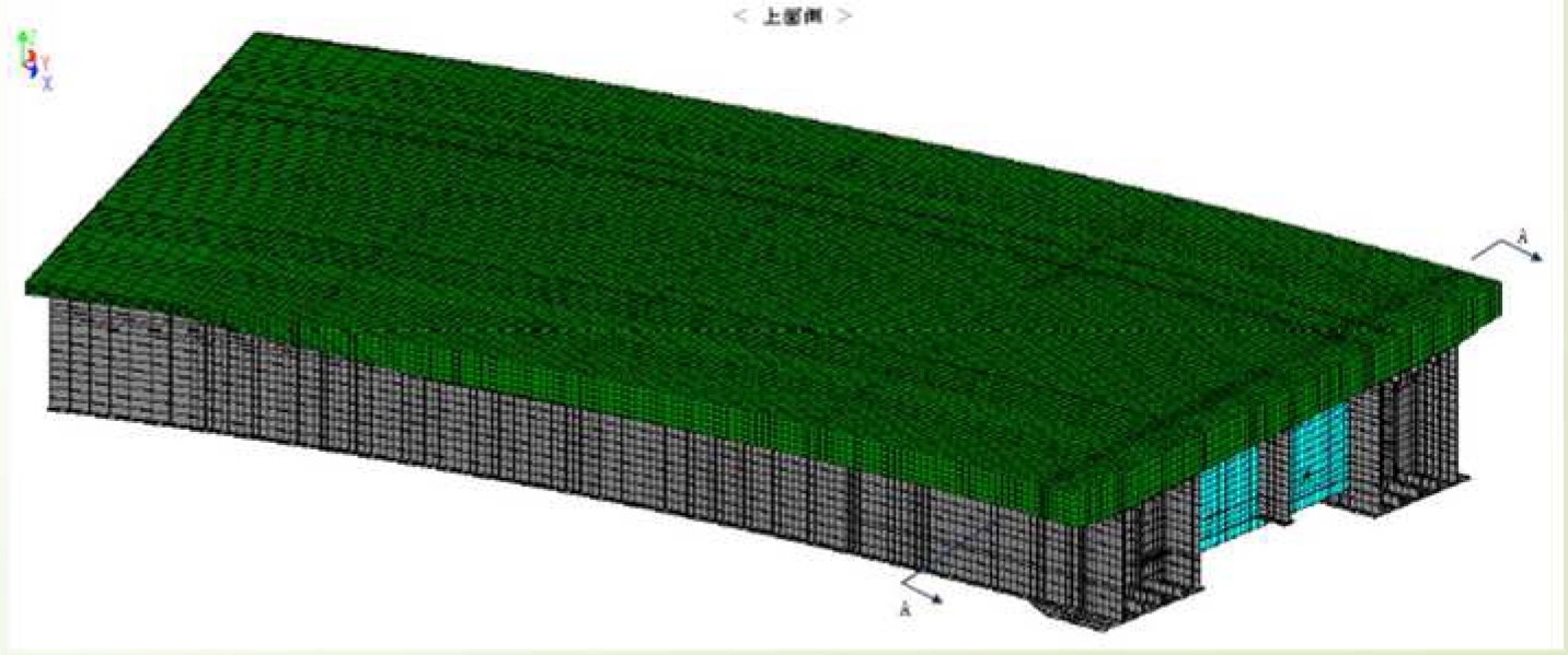 540mm(とりわけ打ち下ろし部は最大で630mm厚に達する)という床版厚に対応するため、同床版厚部分は、主鉄筋段数を通常の倍の4段とした。打設に当たっては、温度ひび割れが生じないか、FEM解析を実施し、その結果に基づいて540mmを3段で打ち重ね、膨張材(太平洋マテリアル)も使用することにした。床版の合成勾配は最大で10%近くになるが、施工時においては、バイブレーションと掻き揚げを強化することでしのぐ方針だ。