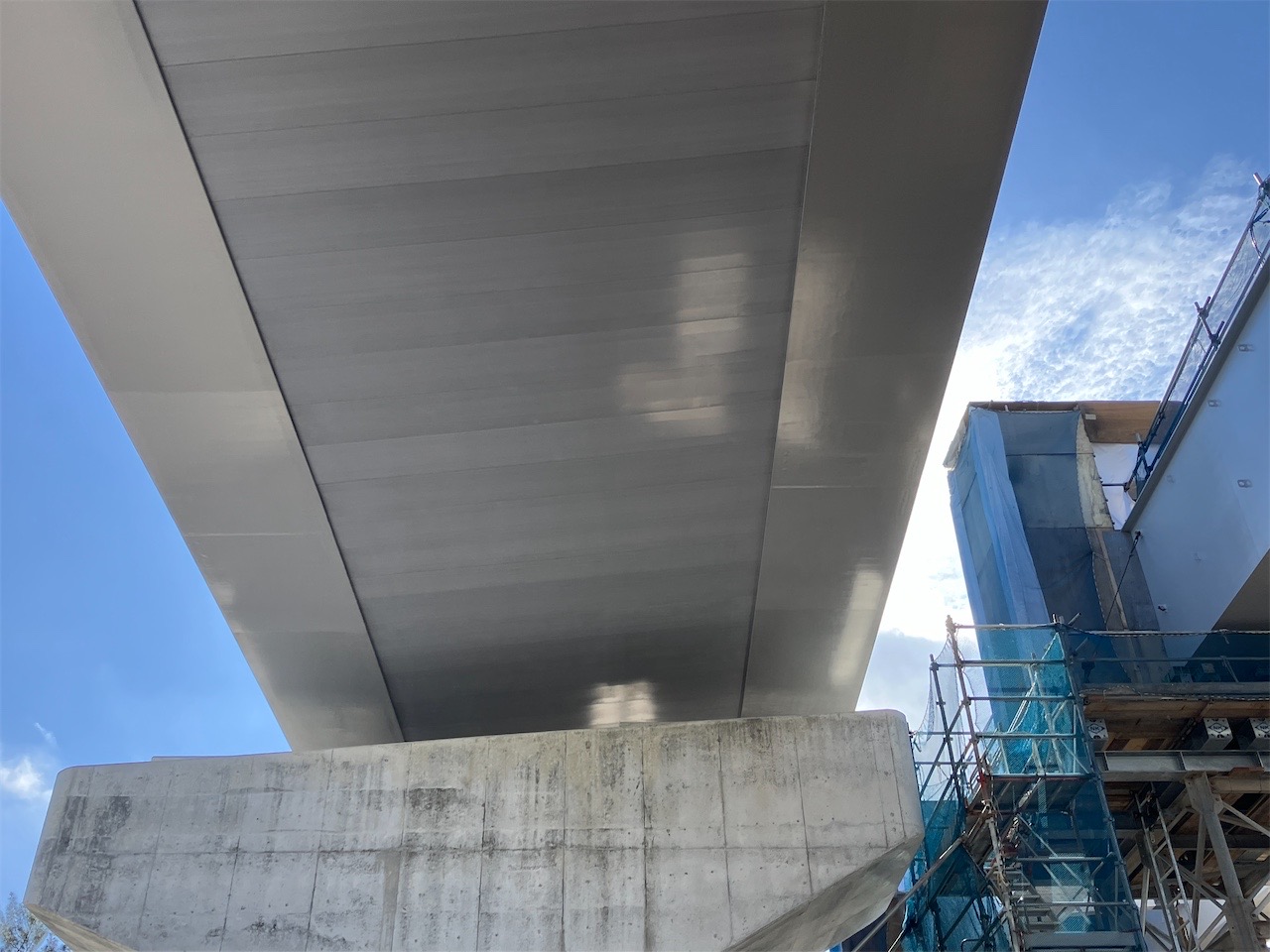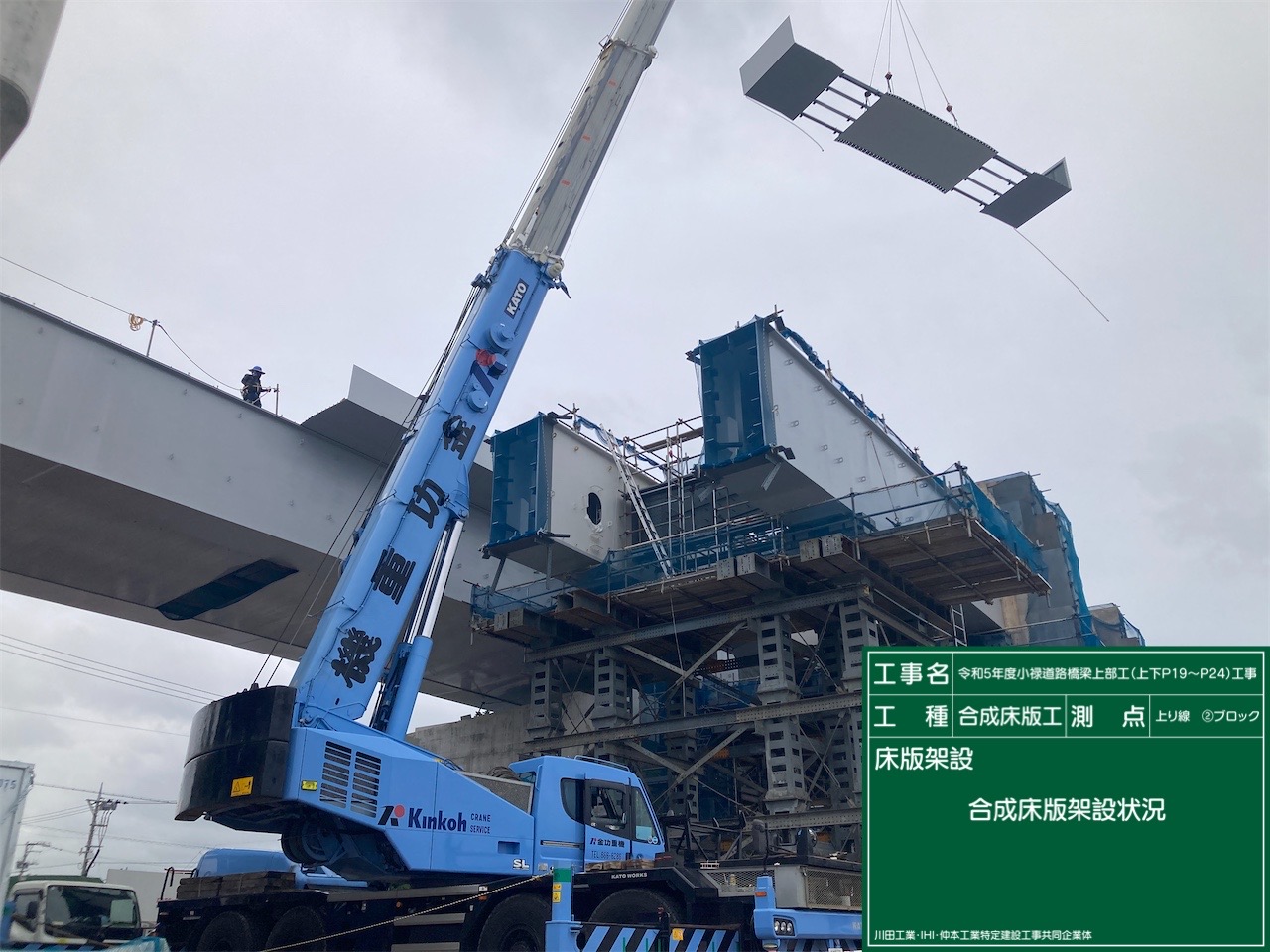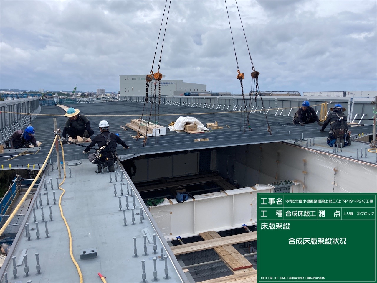 床版は前述のように合成床版を用いているが、上下線でSCデッキ(川田工業製)とチャンネルビーム(IHIインフラシステム製)を使い分ける。