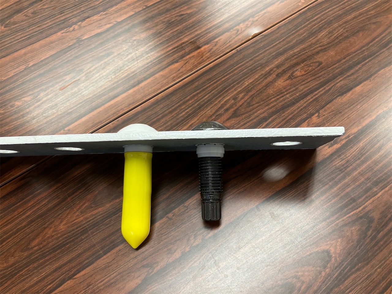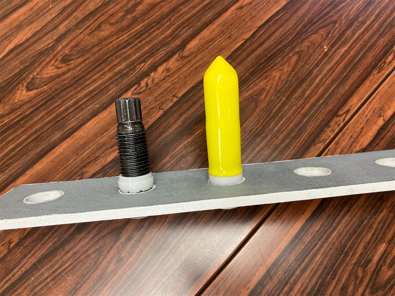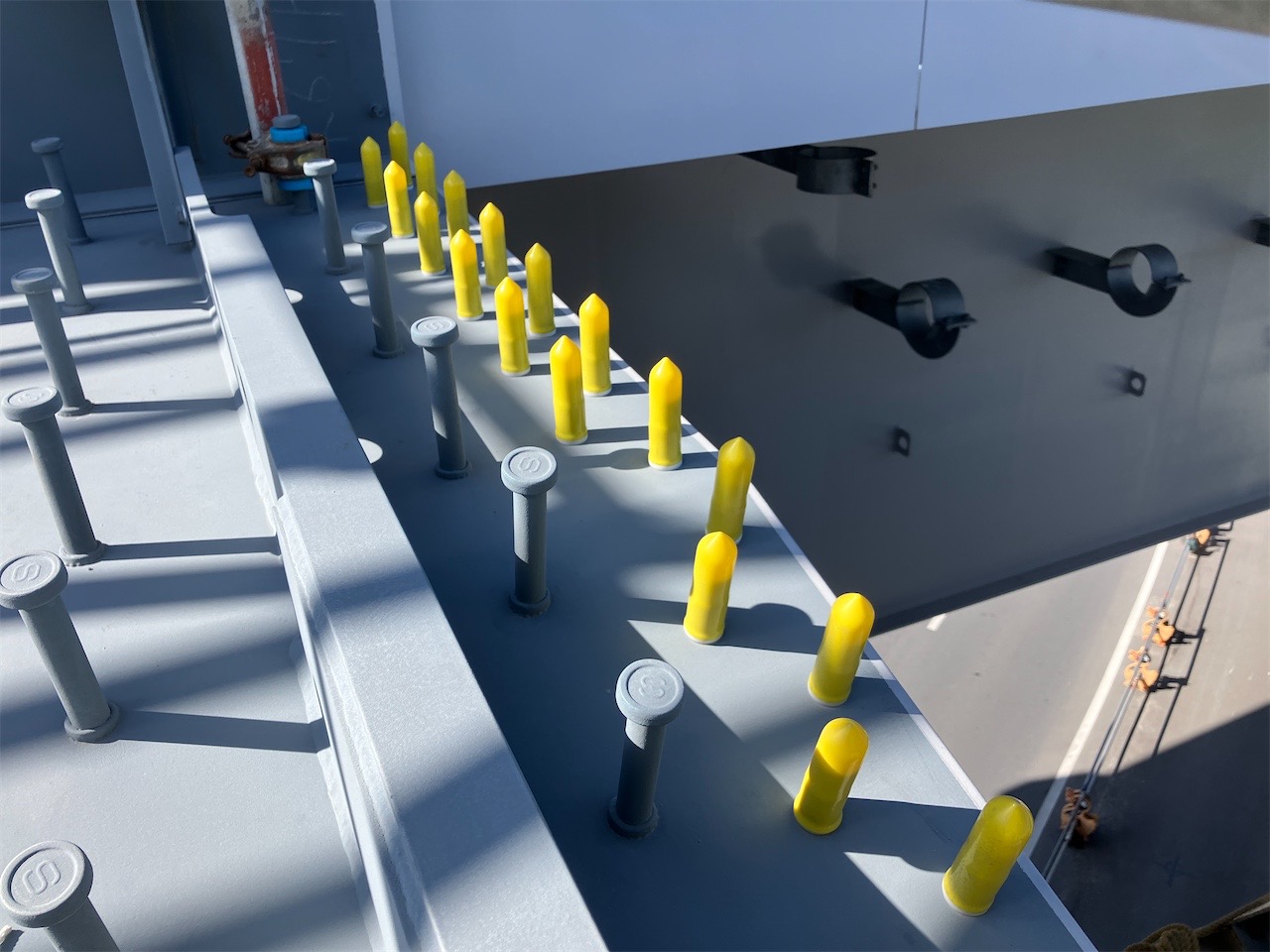 先行挿入したボルトは防錆キャップで密閉し、ボルトネジ部の発錆を防ぐ