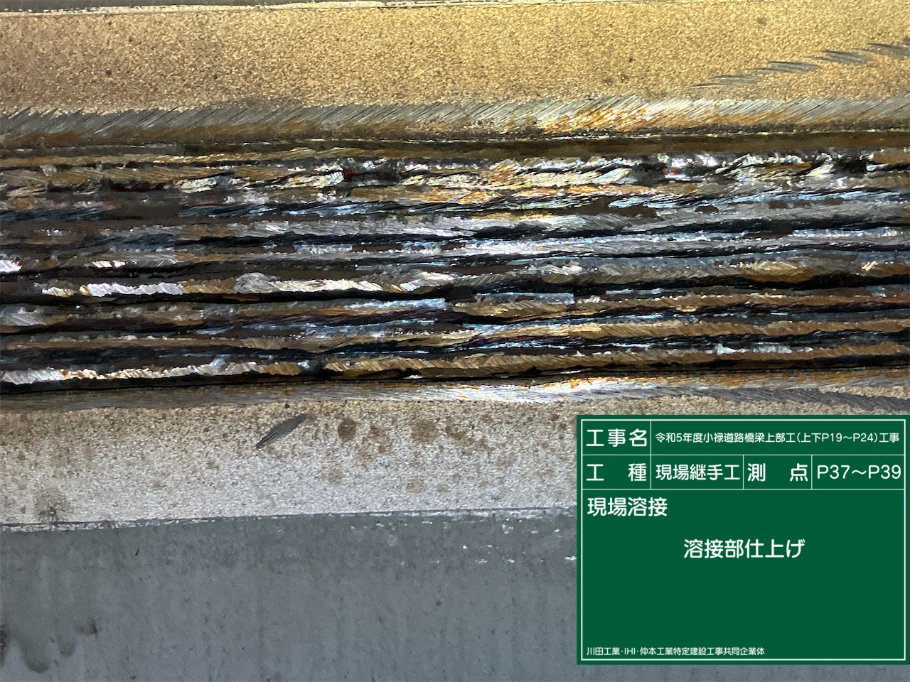 鋼製橋脚の溶接② 45パスに達した溶接部を丹念に仕上げる