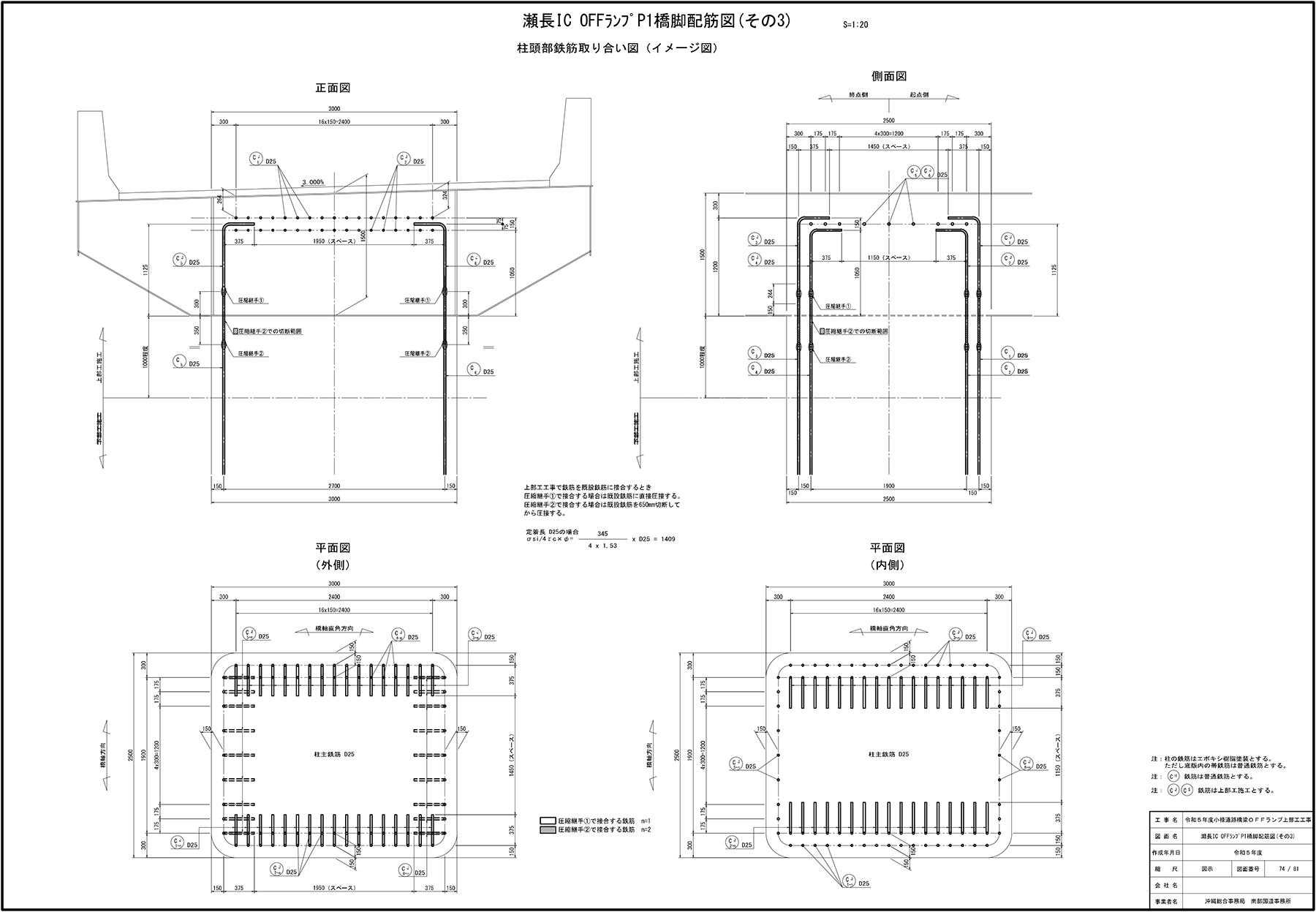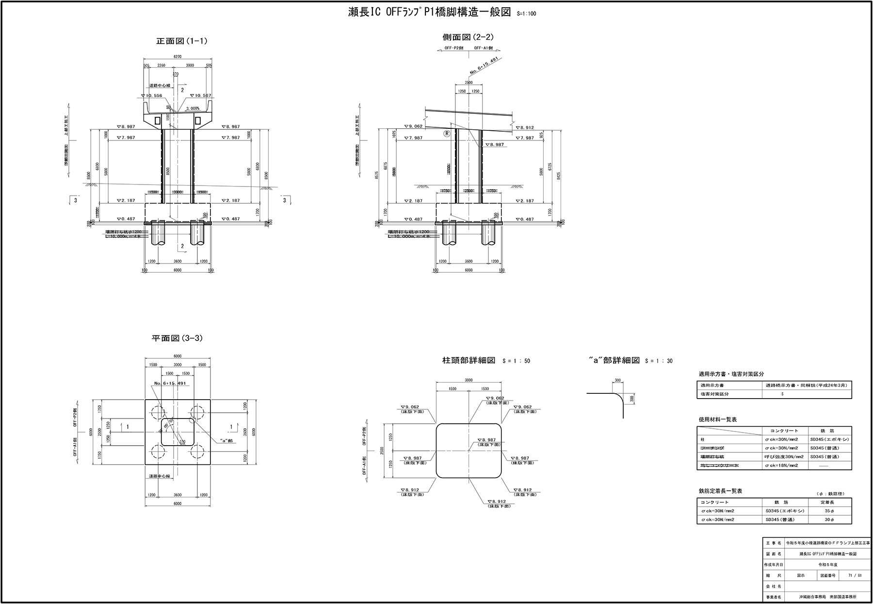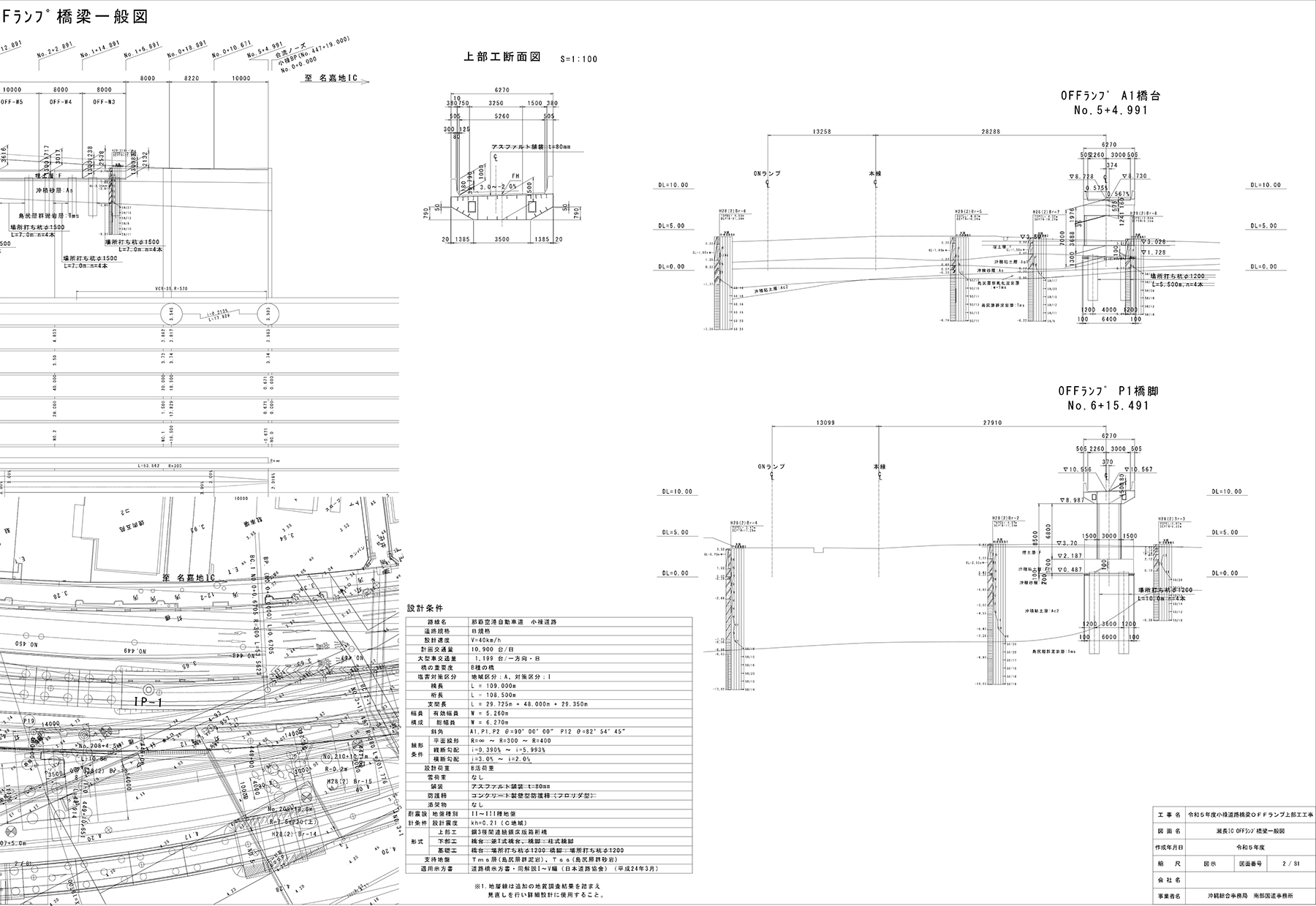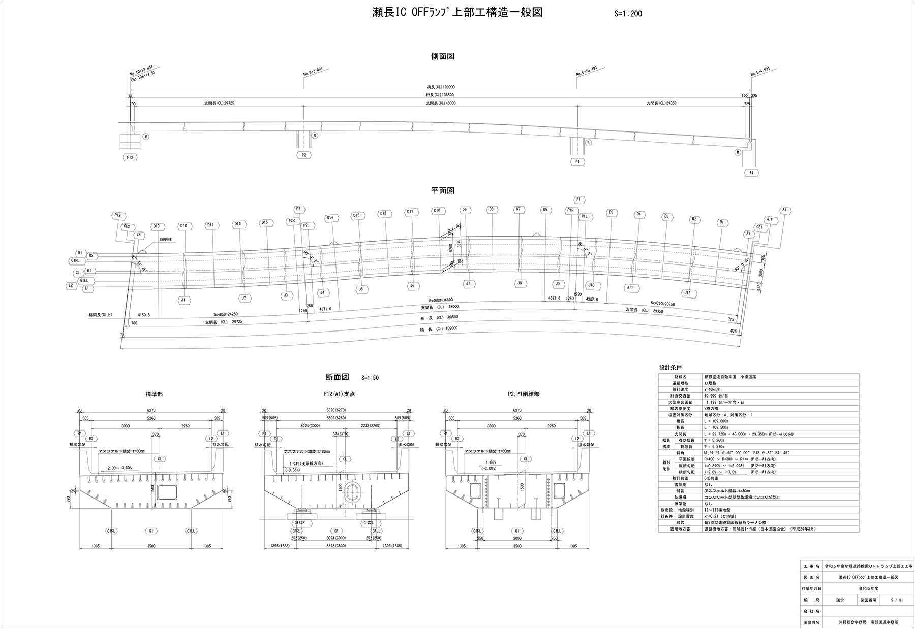 同橋の設計はオリエンタルコンサルタンツ。一次協力会社はとび、足場工、溶接とも仲本工業、コンクリート打設工は仲本工業、防食工は沖神。支承はビー・ビー・エム。