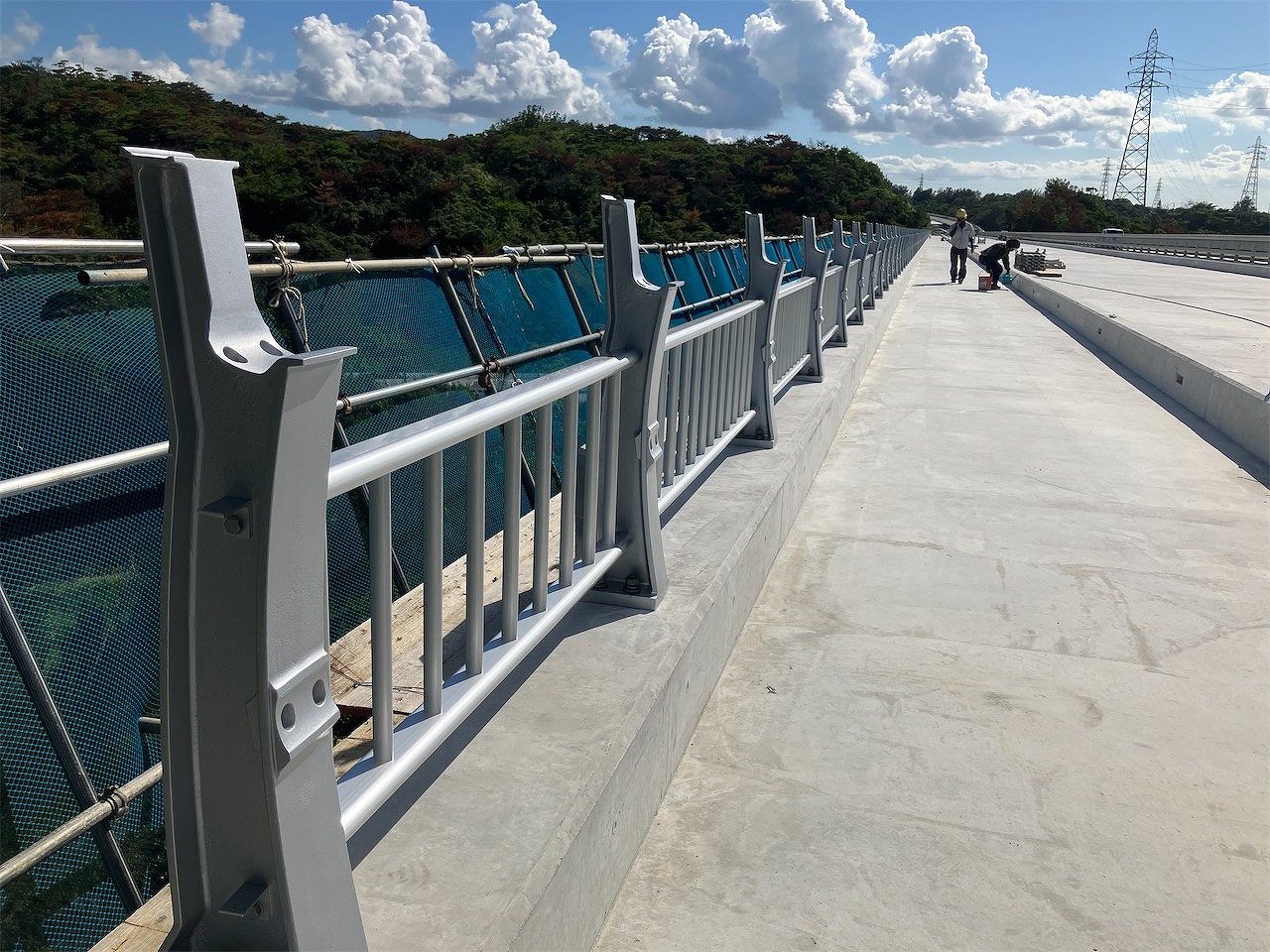 高欄はアルミ合金製の高欄(日軽エンジニアリングcaproa)を9月から設置した。