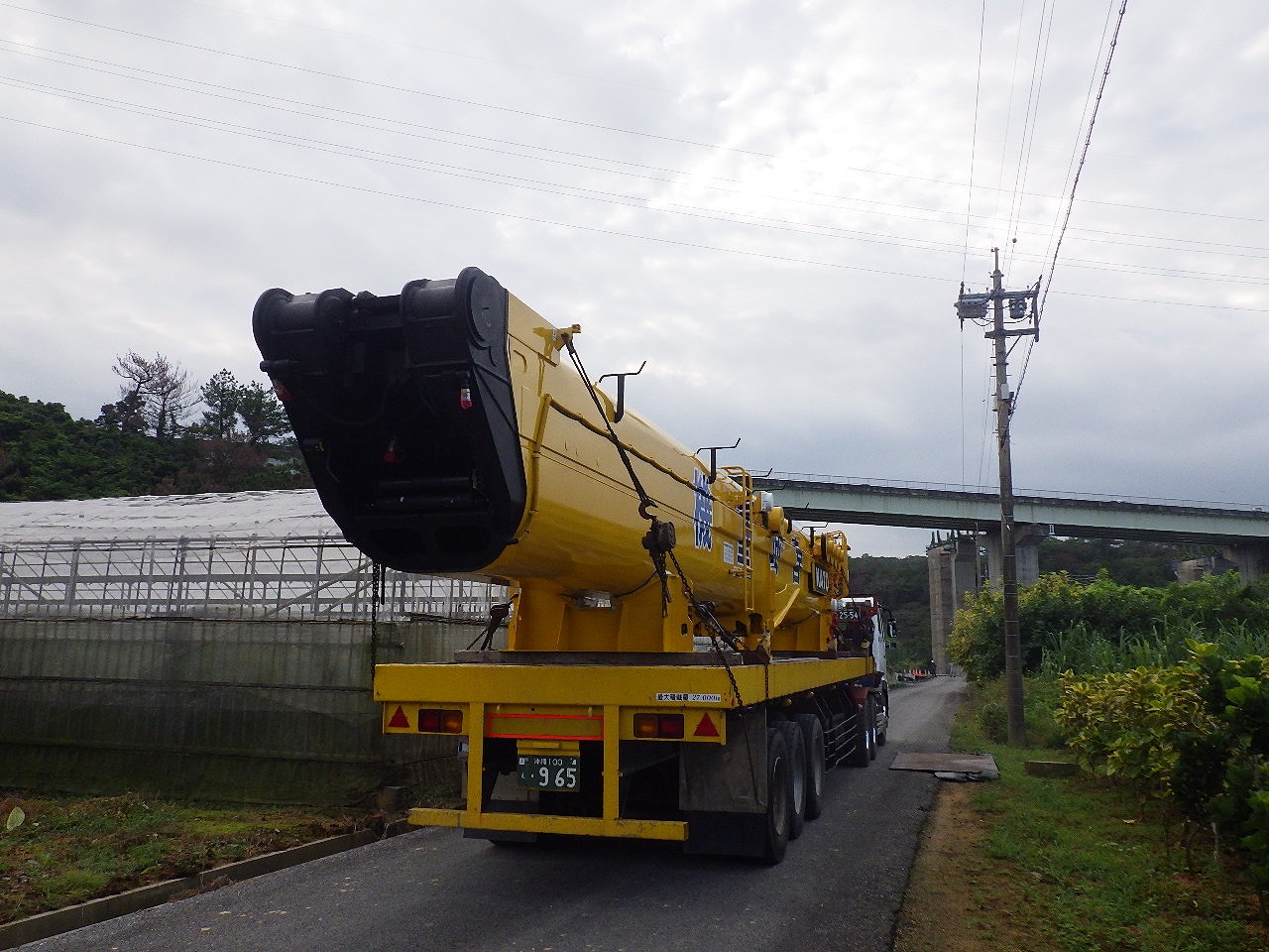 農道は曲がりくねっており、さらに小河川上の橋梁も通過しなくてはならない。そのため、付近住民には輸送について周知を徹底し、事故を避けると共に、農道部は一回で通過することは困難であり、何度もハンドルを切り回しながら、慎重に輸送することに努めた。
