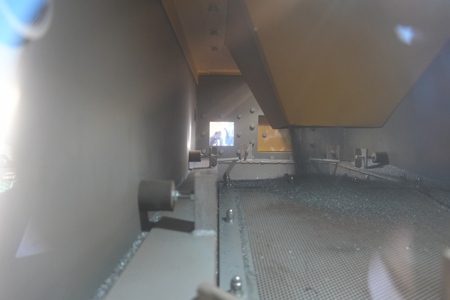 騒音にも配慮している。リユースブラストに用いるバキュームユニットはルーツブロアと粉塵回収機を一体型にしているが、サイレンサを装着し、ルーツブロア稼働時の騒音を従来より約30%程度低減した。さらに、ルーツブロアの出力は37kWと55kWの2機種を用いているが、37kWと55kW、両機とも、インバーターを付けて、「従来は0か37kW(55kW)か、しか選べなかったが、本機械は吸い込み量を調整できるようにすることで、使用電力を最適化し、省電力、CO2排出量の削減をできるようにした」(同)ということだ。