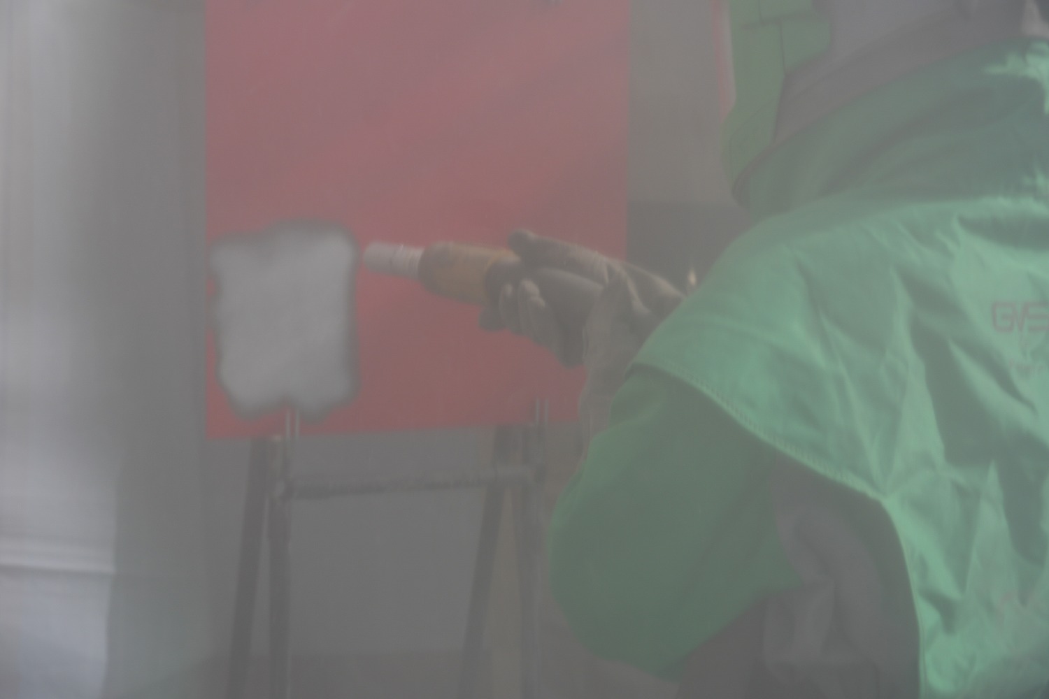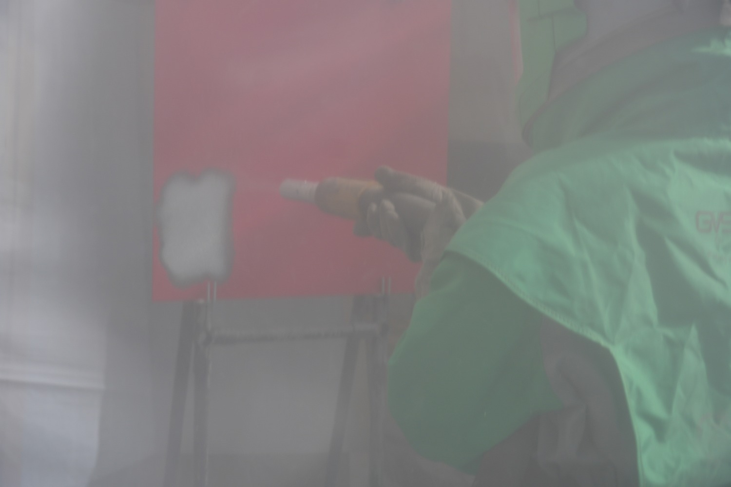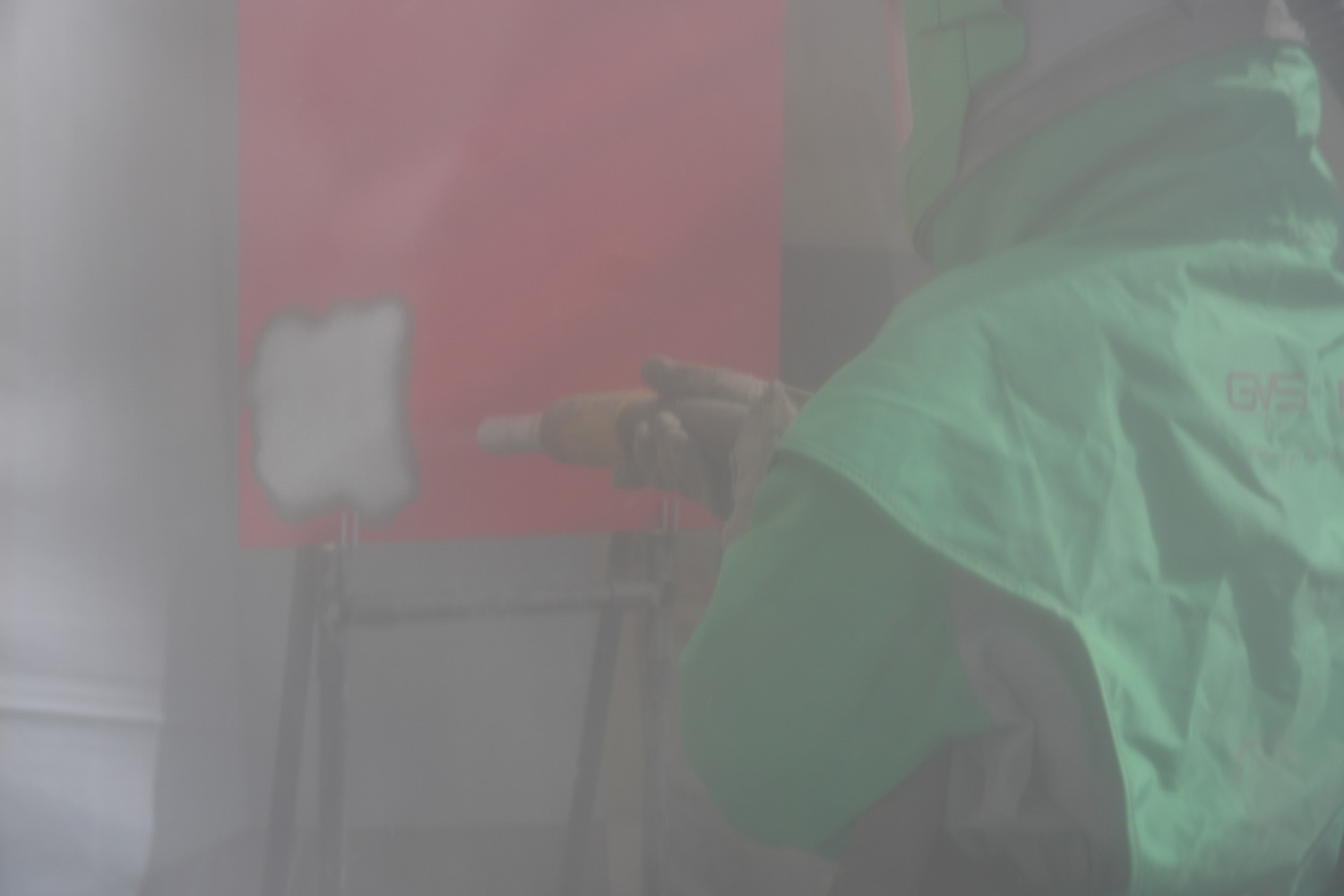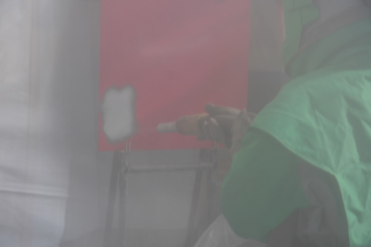 モイスチュアブラスト 少量の高圧水をエアーブラストに混ぜて塗膜除去及び研掃工を行う