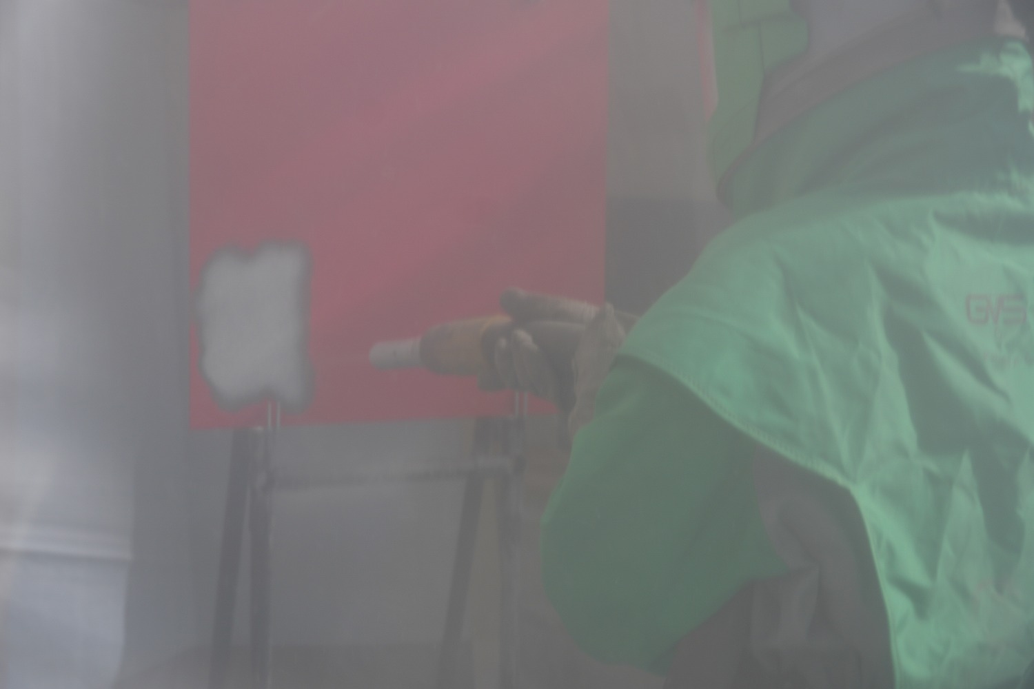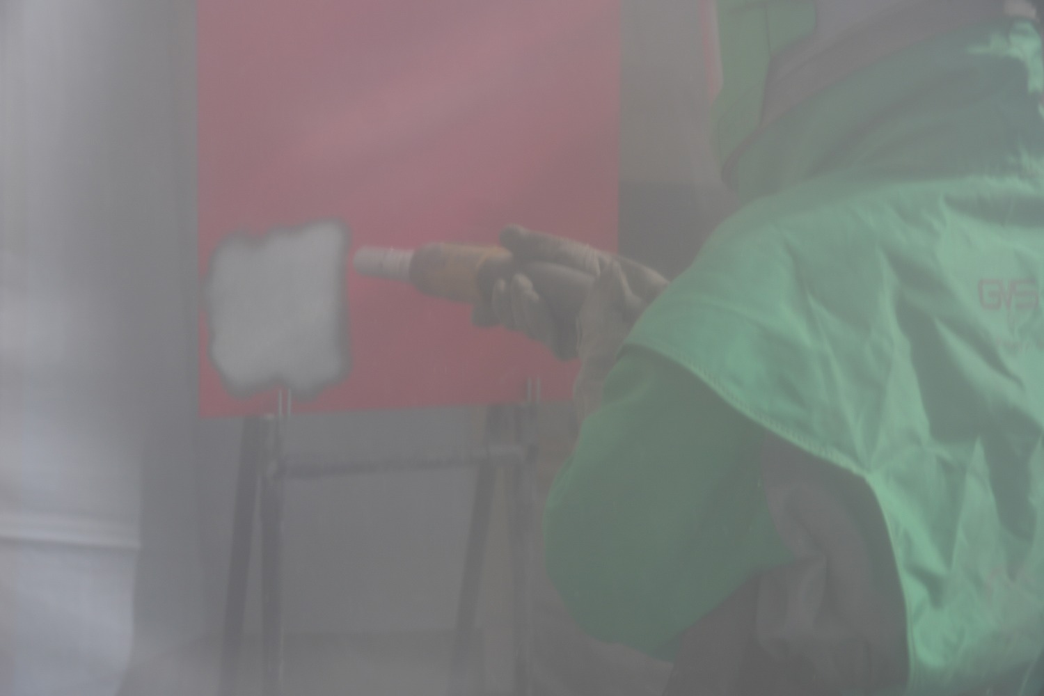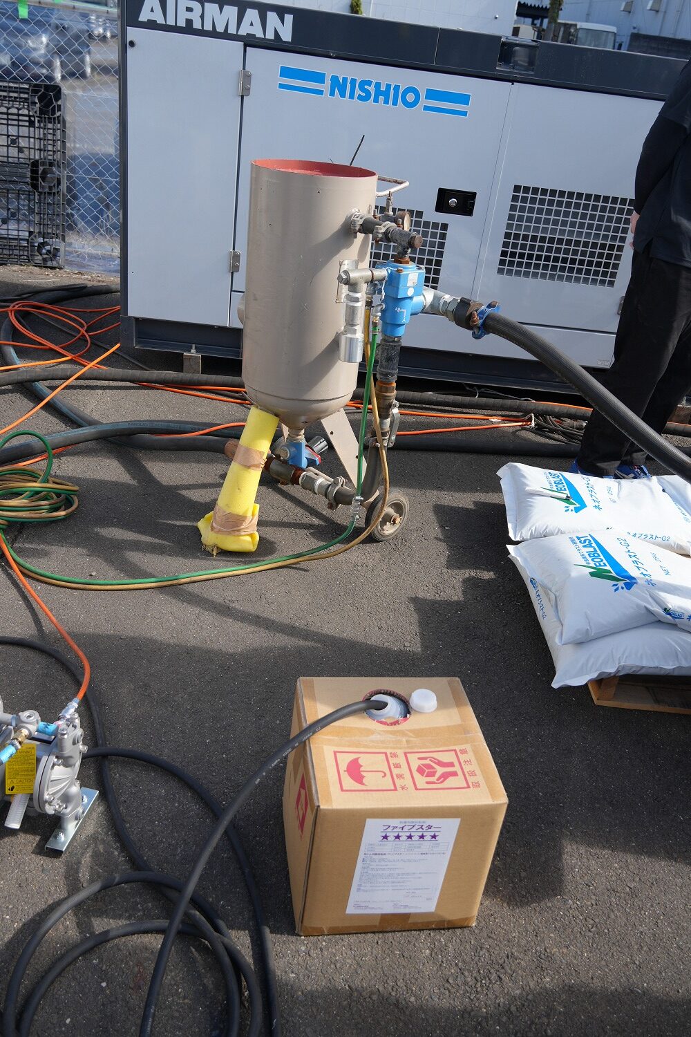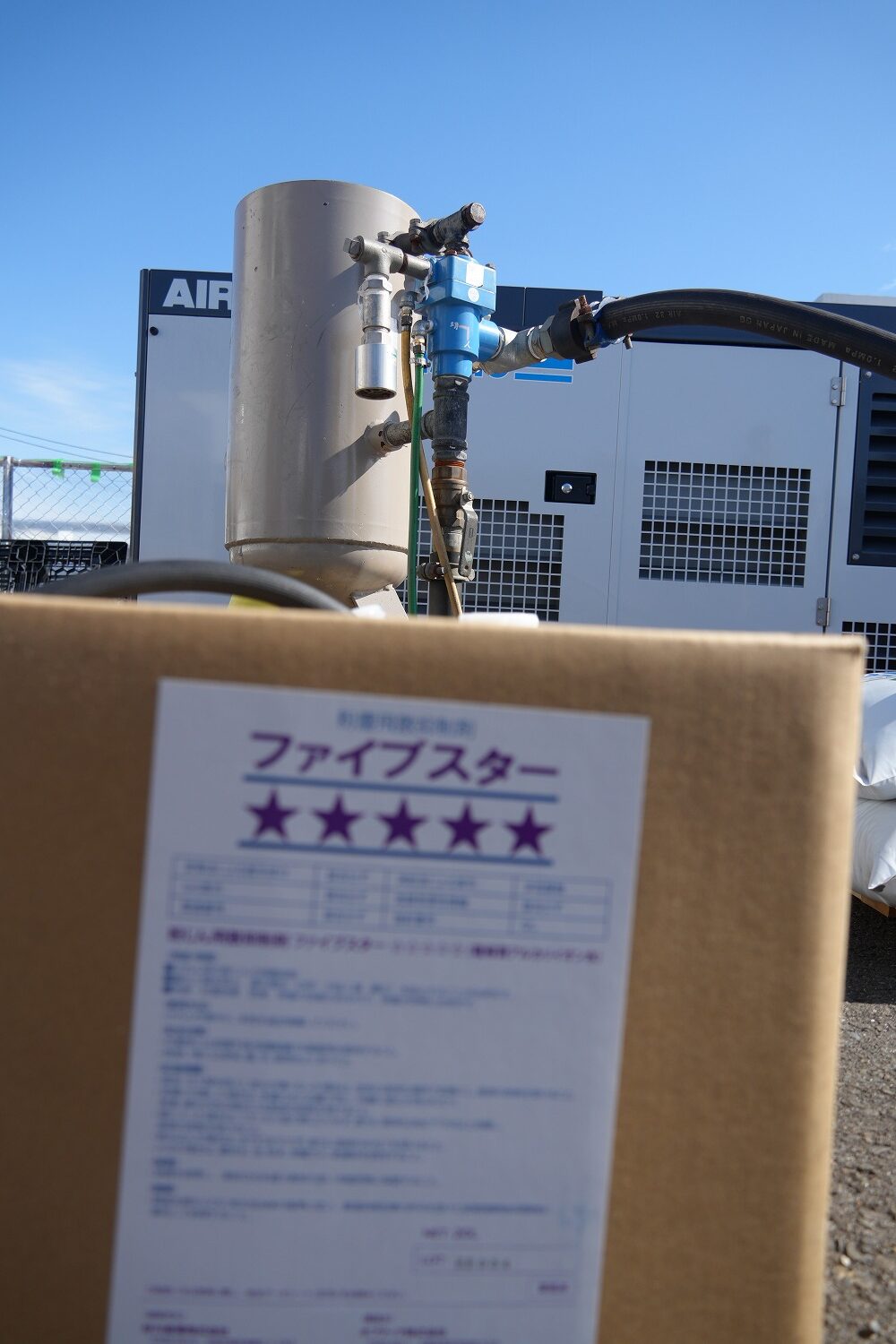 同工法は、それを防ぐため、水にpH12.5のアルカリ性を付与したイオン電解水『ファイブスター』を用い、それを研削材にコーティングした形でブラストすることで、研削材が鋼材に衝突して割れた時にも粉塵を抑制すると共に、戻り錆の発生を阻止することに成功した。既に熊本県が管理する橋梁等でも用いられており、今後も積極的に採用を働きかけていく方針だ。