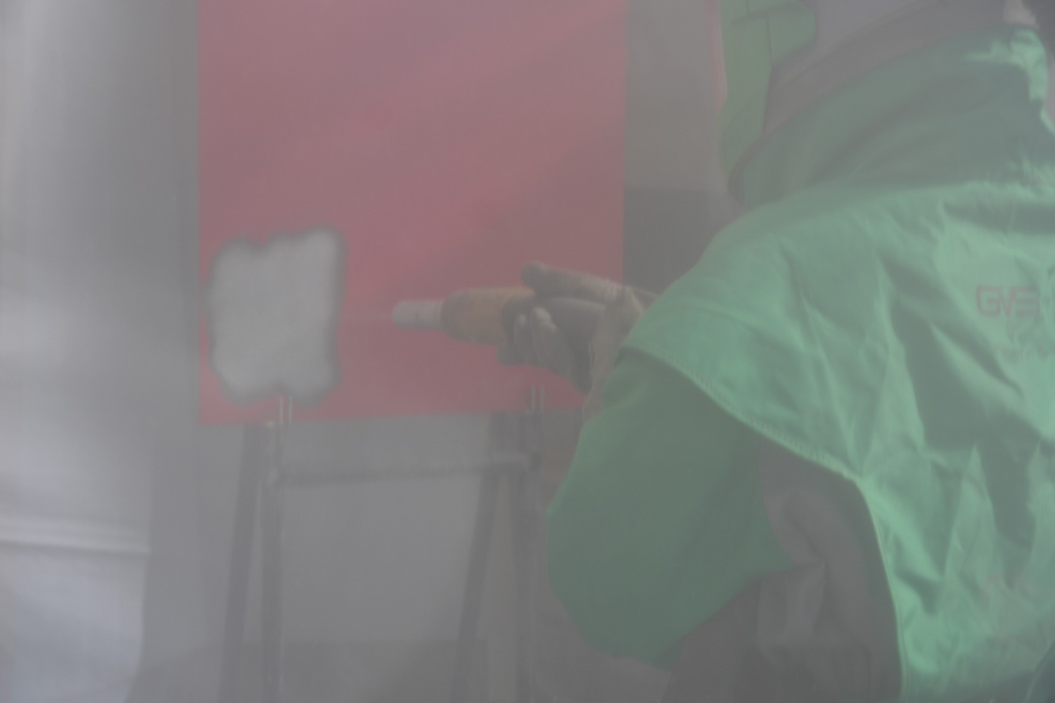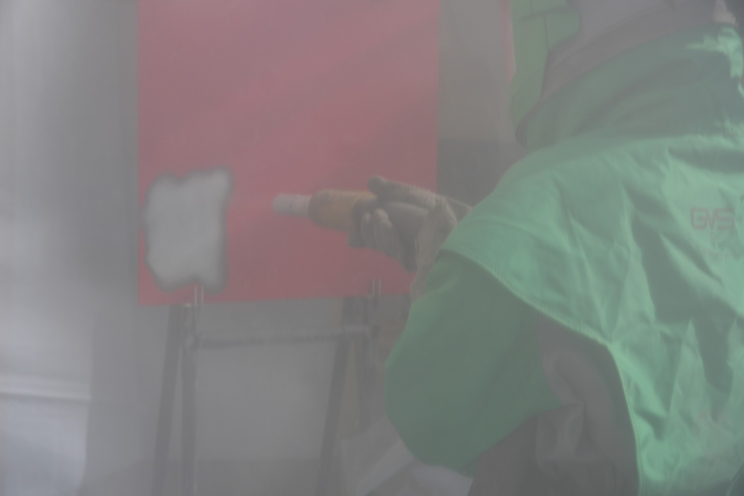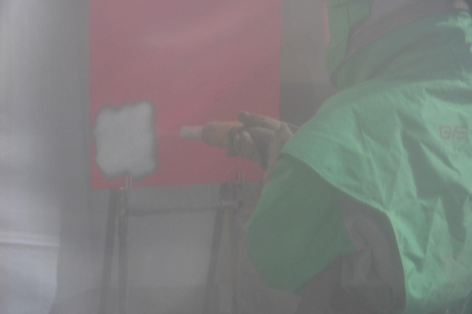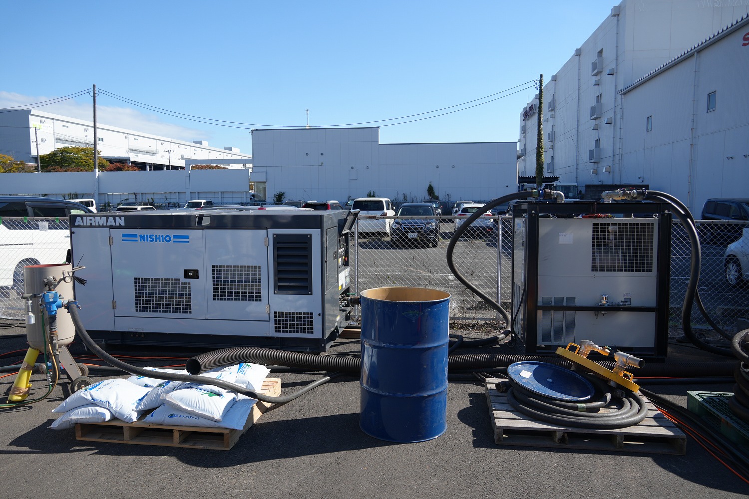 好川産業は、10月24、25日の2日間、仙台市内の好川産業仙台営業所敷地内で、鋼橋など鋼構造物の塗膜除去製品を主とした環境対策商品の実演会を開催した。実演会には約100人の施工会社、販売代理店などが参加し、商品説明や実演などを関心深く見聞きしていた。