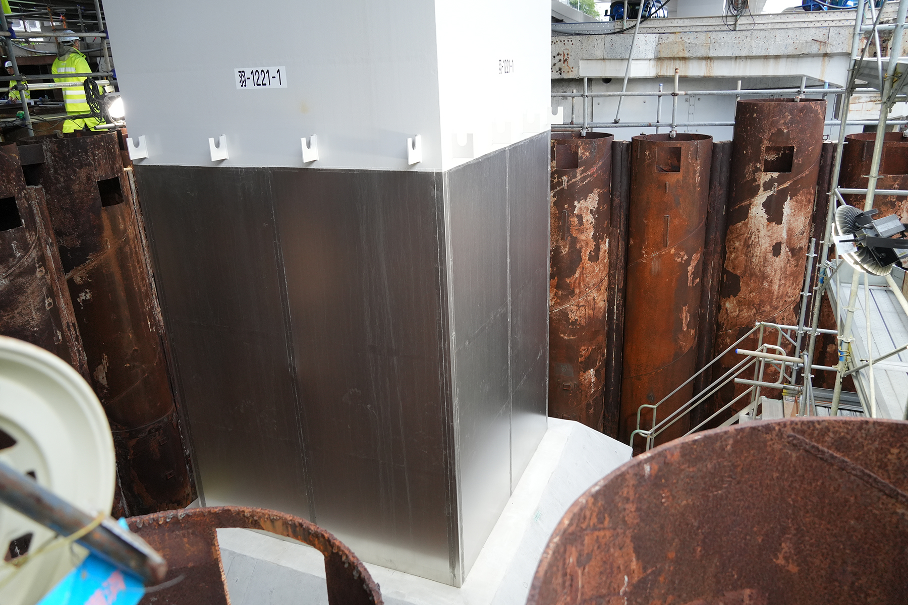 橋脚部に施されたステンレスライニング