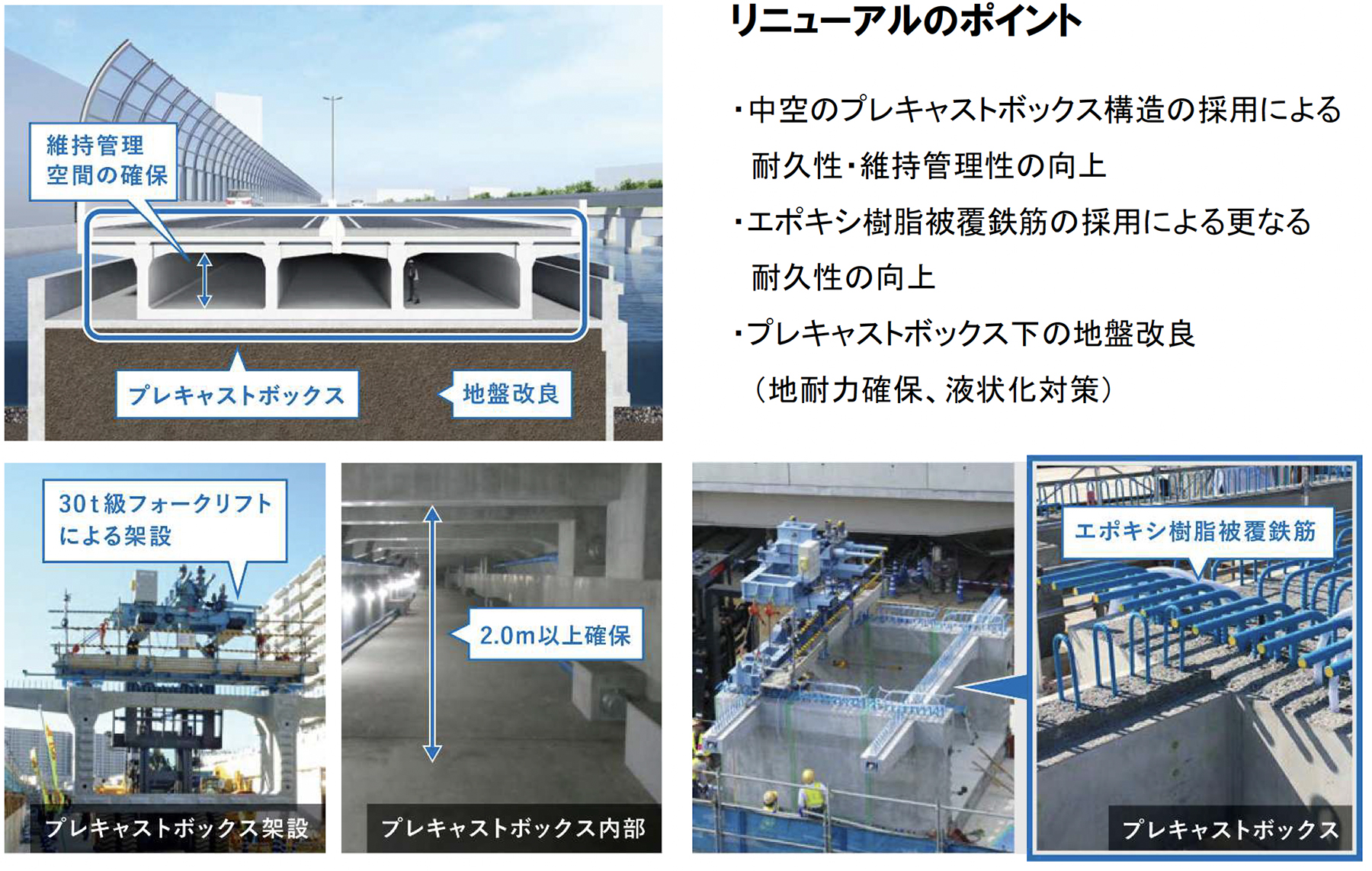 プレキャストボックス構造内部で示された点検・補修を前提とした更新思想