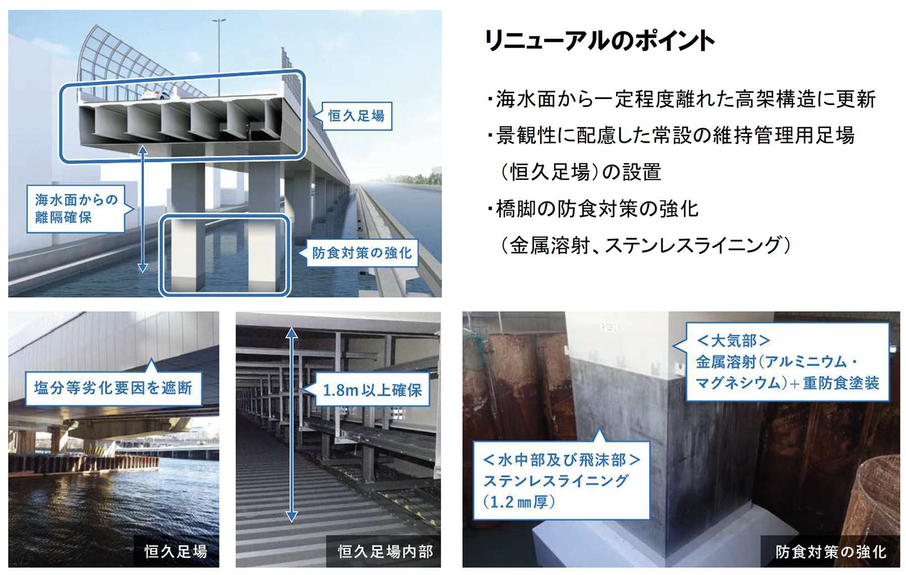 首都高速道路 1号羽田線 東品川桟橋・鮫洲埋立部にみる段階更新と恒久足場
