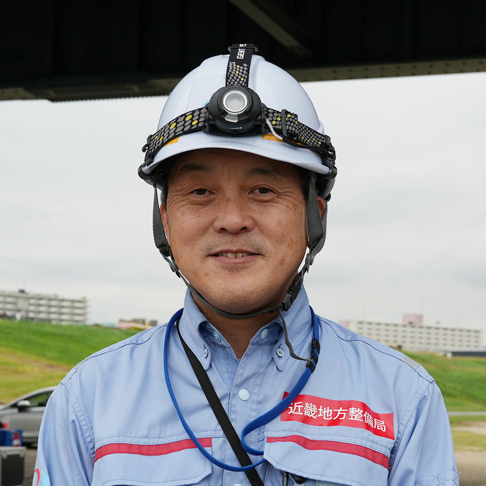 本体験会の企画・運営を担ったのは、辻脇 崇氏(国土交通省 近畿地方整備局 大阪国道事務所 総括保全対策官、左写真)である。辻脇氏は、道路メンテナンスを取り巻く現状について、「人手不足、予算不足、点検費用の高騰、技術力の継承といった課題が同時に進行している」と語る。橋梁点検は5年に1回の定期点検がすでに三巡目に入っており、点検データそのものは一定程度蓄積されてきた。一方で、構造物の老朽化は確実に進行している。近年は、道路陥没や水道管破裂による道路冠水、大規模な内水氾濫など、道路下空間を含むインフラトラブルも各地で顕在化している。気候変動に伴う災害の激甚化も重なり、従来と同じやり方を続けるだけでは、維持管理が立ち行かなくなりつつある。「三巡目に入ったということは、単に点検を繰り返す段階から、蓄積したデータを前提に次のやり方を考える段階に来ている」と辻脇氏は話す。