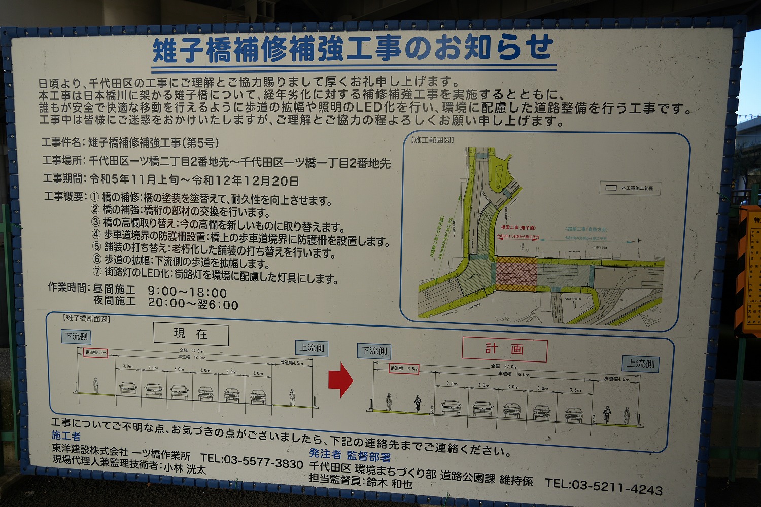 施工は東京都との協議の結果、11月~5月の非出水期のみで桁下の施工をせねばならず、「作業にどうしても時間がかかる」(東洋建設)状況である。現在は、塗装工を先行して行い、来年度から耐震補強に着手していく予定だ。