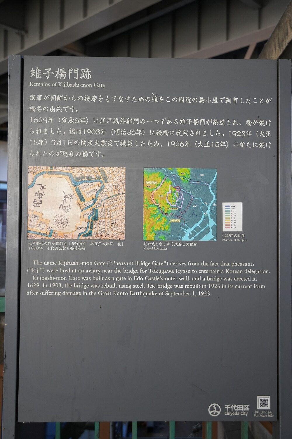 補修補強内容の立て看板 / 雉子橋門跡の説明板(井手迫瑞樹撮影)