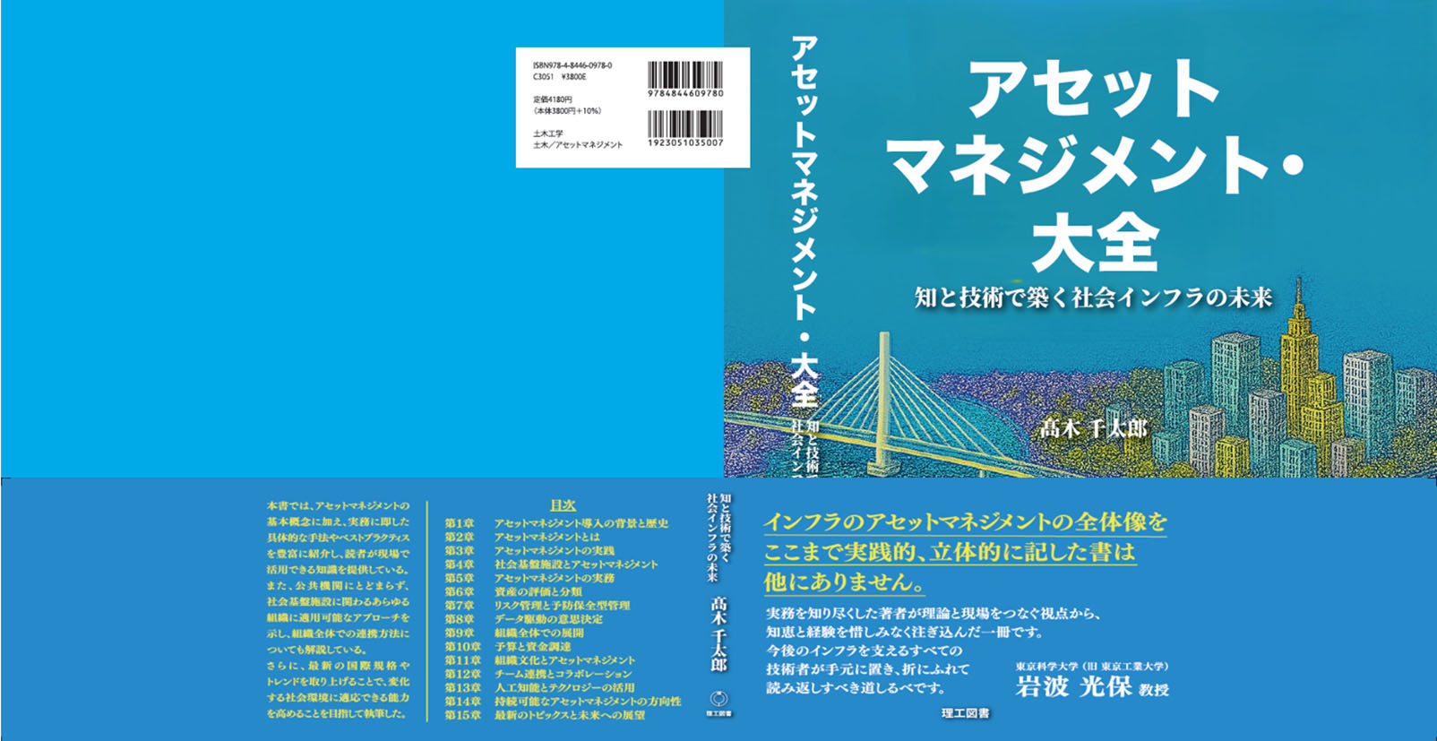 この度、私の経験と知見を最大限生かした「アセットマネジメント・大全 ‐知と技術で築く社会インフラの未来」(図‐10参照)を今月(10月)の初旬に出版し、全国の書店に図-10の書籍に並ぶことになっている。アセットマネジメントと言うと古臭いと感じるか、新しいと感じるかは読者の感覚で大きく異なっている。本書籍の特徴は、従来のアセットマネジメント関連書籍とは大きく異なった内容、特に、インフラ建設管理の主体である国や地方自治体における予算や公会計、議会制度や契約などに踏み込んで紹介、説明している。是非、書店に並んだ「アセットマネジメント・大全」を手に取って,気に入ったら購入してほしい。なお、当該書籍の表紙は、私が基本デザインをした青を基調とした自信作である。
