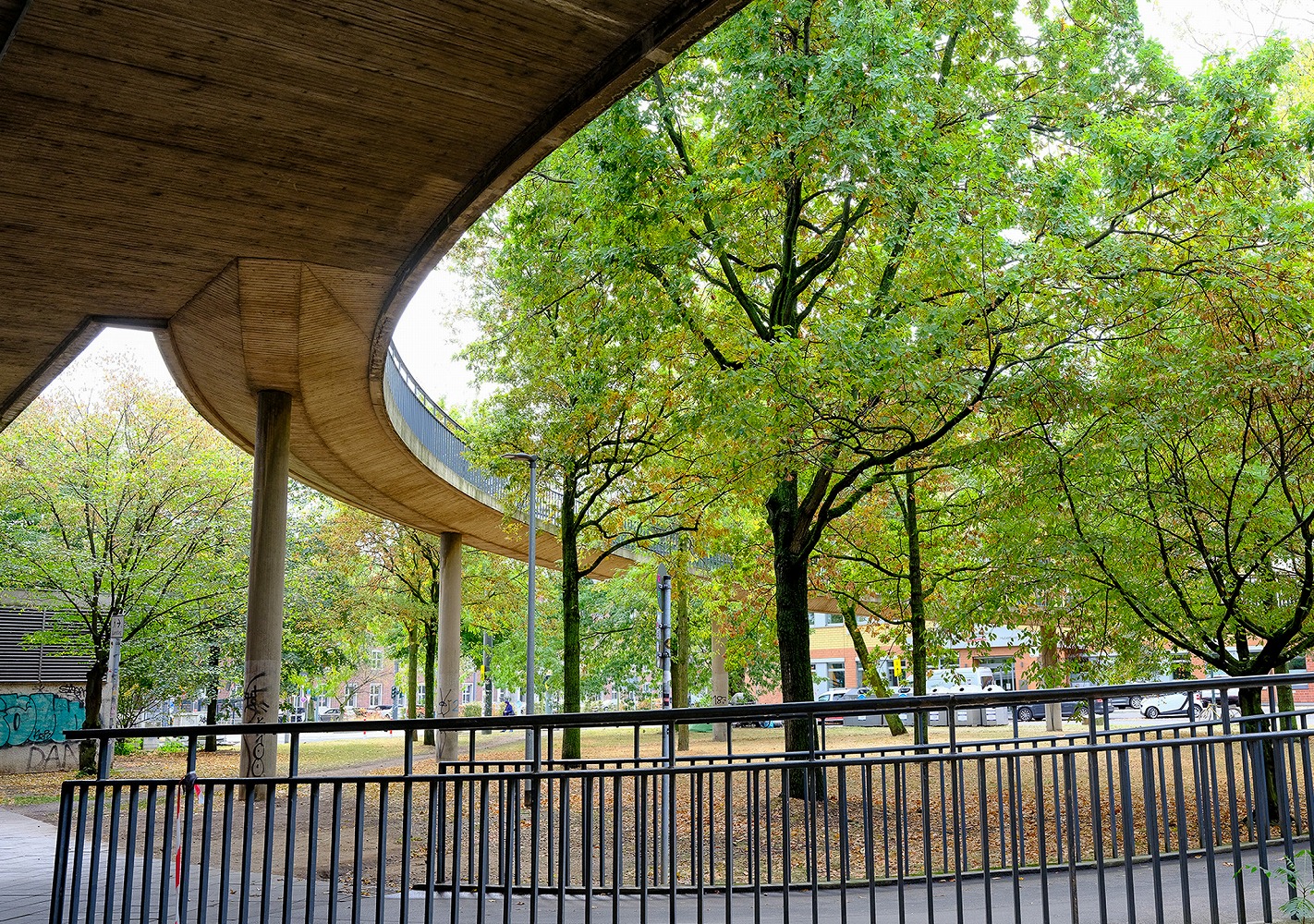 デュッセルドルフは、ケルンと同じノルトライン=ヴェストファーレン州ということもあり、ケルンに触発されて、同じように国道の地下化を計画します。こちらは2kmにも及ぶ地下化で、トンネルの竣工は1993年、プロムナードは1995年に完成しました。ちなみにトンネル設計には、土木エンジニアリング事務所グラスルが関わっています。