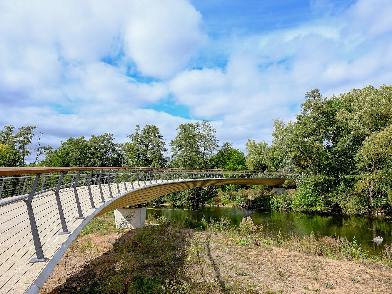 二つ目に紹介したいのは、ドイツ・ヘッセン州のフランケンベルクに架けられた3つの木橋です。こちらは、2025年度のドイツ橋梁建設賞の歩行者・自転車用橋部門の優秀賞を受賞しています。また2023年度のドイツ木造建築賞のベスト20に入っています。