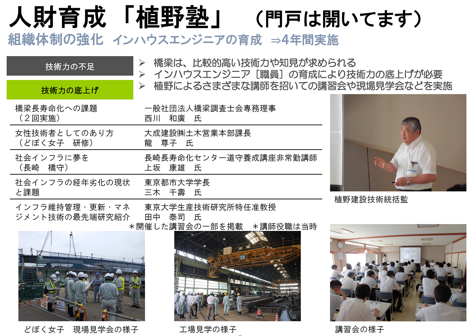最近問い合わせがあるのは、「トリアージ」と「補修オリンピック」「植野塾」である。どれも必要だができていないのであろう。悩んでいないで、やればよい。わたしのやり方と、それぞれの自治体のやり方が違っても当たり前である。しかしこれらはみな実施当初、かなりの批判を受けた。他人が変わったことをすると必ず批判するのがこの国の悪いところ。そのくせ物まねは許容してしまう。実は、問い合わせは、少ないのが実情。みなさんわかっていれば、よいがなとは思うが、まあ、それぞれの事情がある。しかし、やってもいない者への問い合わせは、どういう考えなのか?無駄である。思考を疑ってしまう。またそれに答える者もいる。考えだけ聞きたいならばよいが、そうではない場合は無駄。誰に聞くかは実は重要な問題なのである。