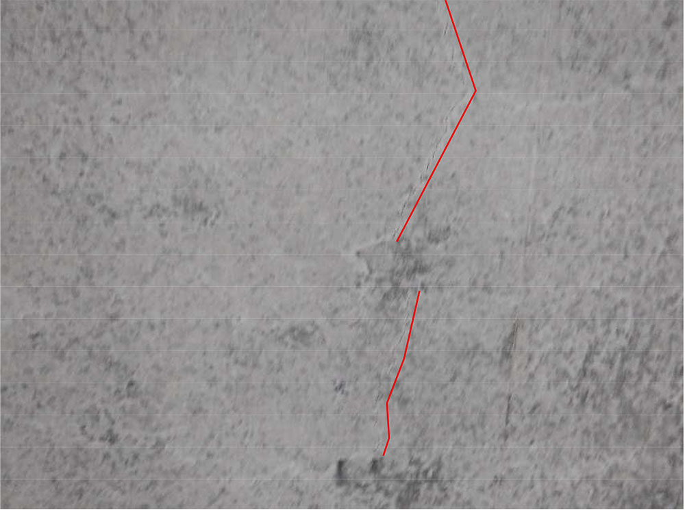 (写真-8)ひび割れ(赤線)