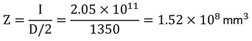 実断面係数Zが必要断面係数値 1.26×108 mm3 を上回るため OK(概略検討の結果、曲げに対して必要断面係数を満足することを確認した)