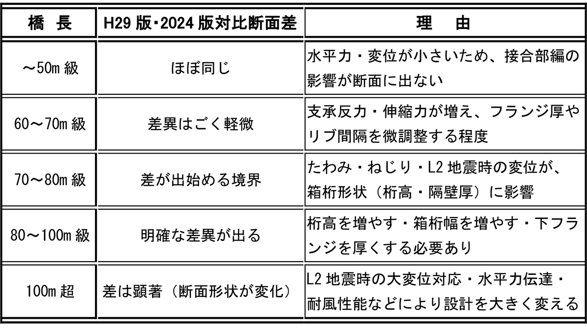 表-2 新道路橋示方書とH29年版との対比(橋長別・単純桁)